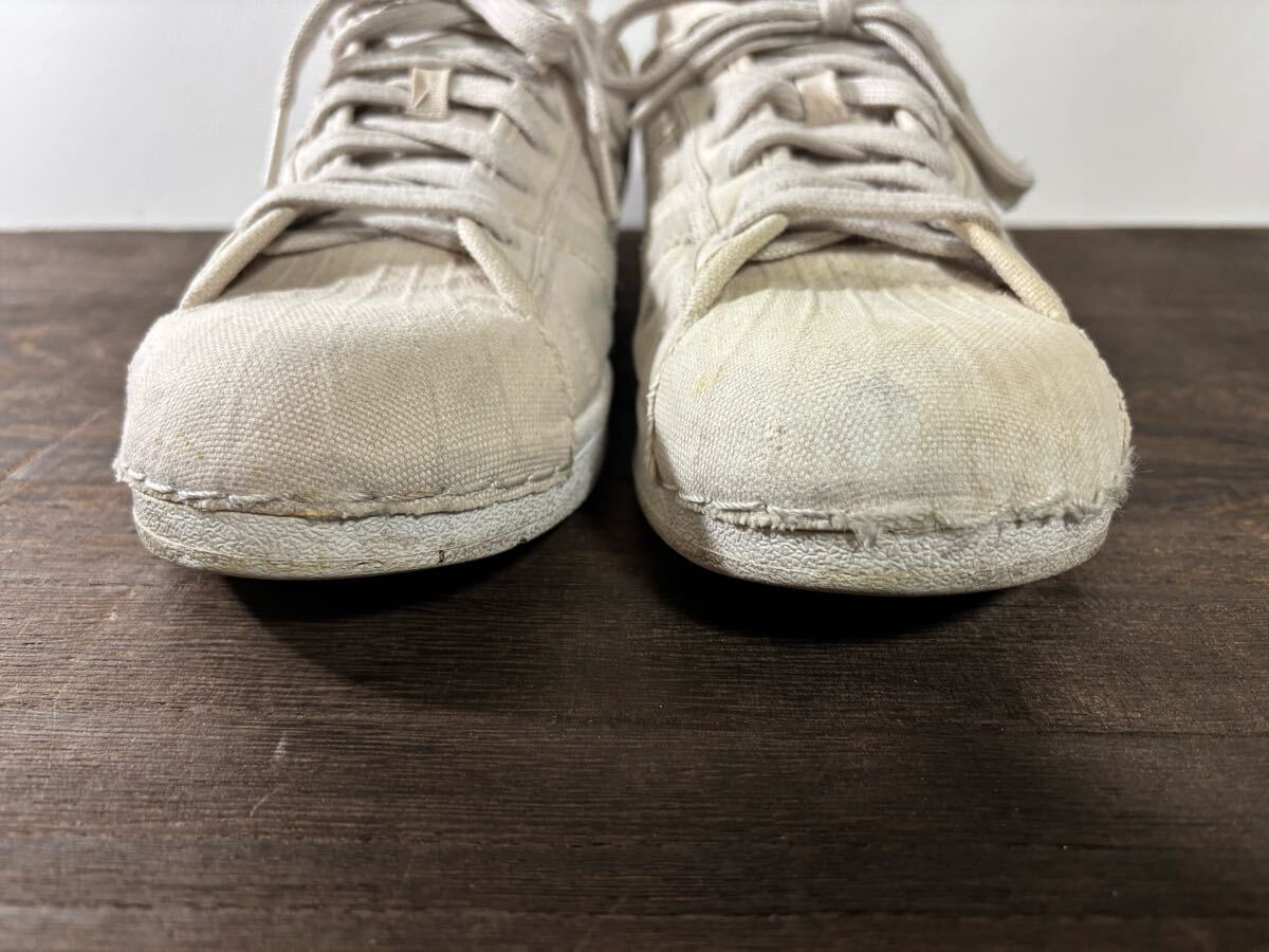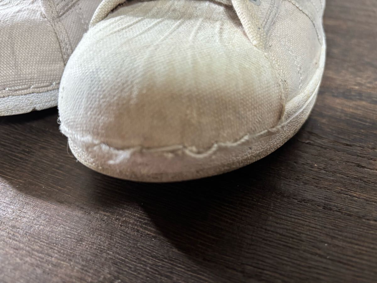 つま先の糸が緩くなってます。全体的に多少汚れがあります。中古になりますので見逃している小傷、汚れ等はあるかもしれません。気になる方はご遠慮ください。