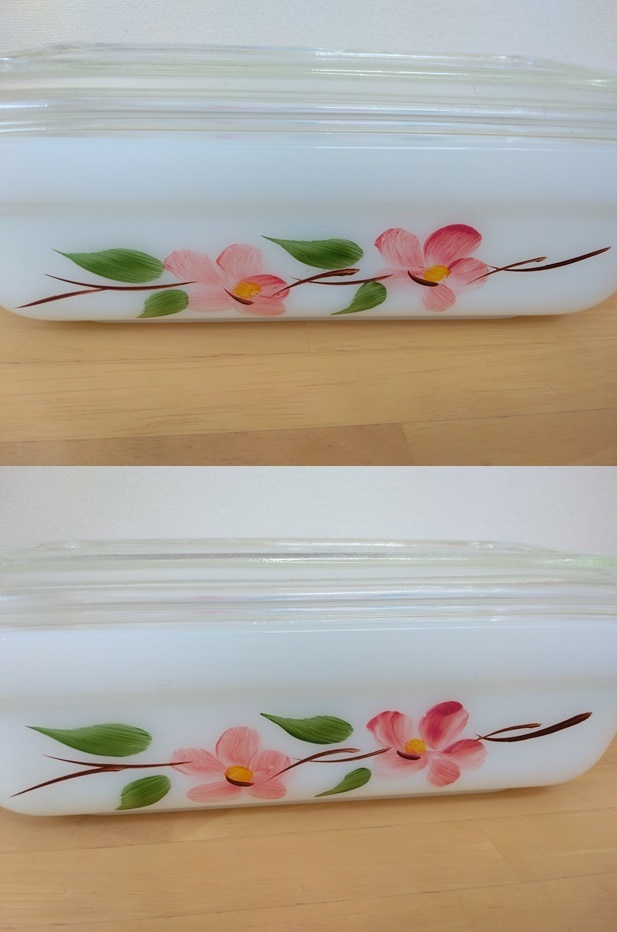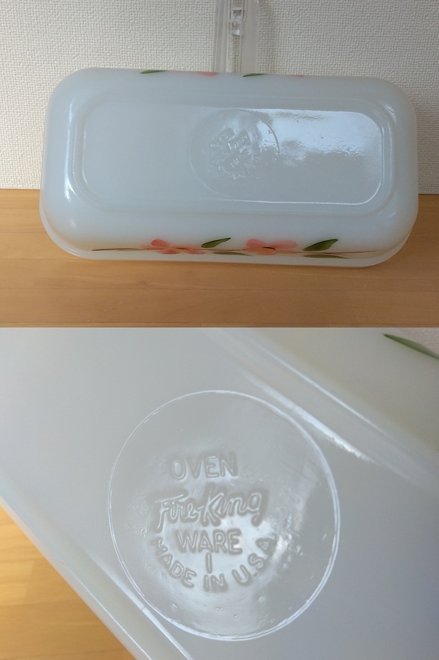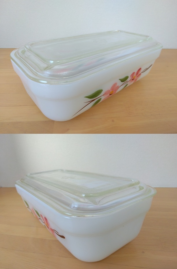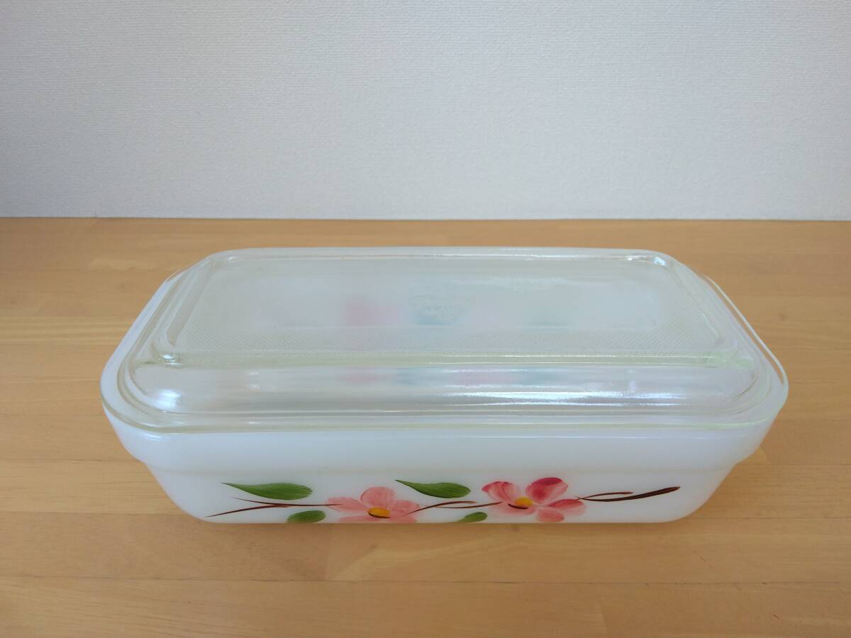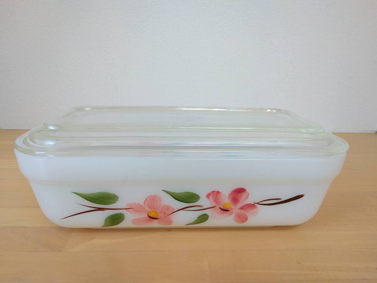 ファイヤーキング レフリジレーター ガラス蓋付き ゲイファド スタジオ ピーチブロッサム Fire King GAY FAD USAビンテージ