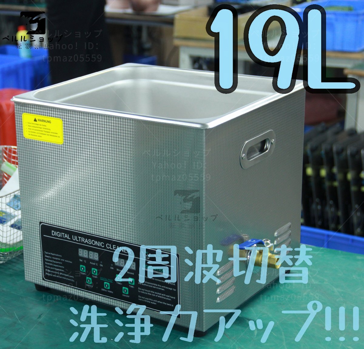 2周波で洗浄力 強力アップ◆ 超音波洗浄器 デュアルタイプ 19L 業務用 排水ホース付き 安心の1年保証付きです