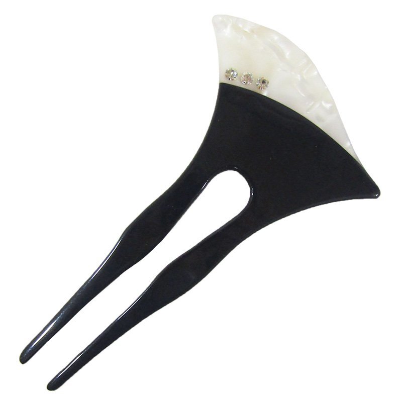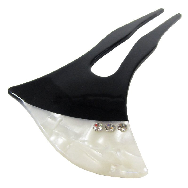 先がホワイトシェル風になっている小さめのバチ型簪です。