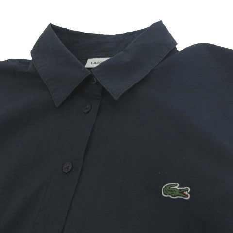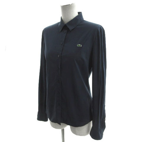 ラコステ LACOSTE シャツ 長袖 ロゴワッペン ストレッチ コットン混 ネイビー 紺 36 レディース