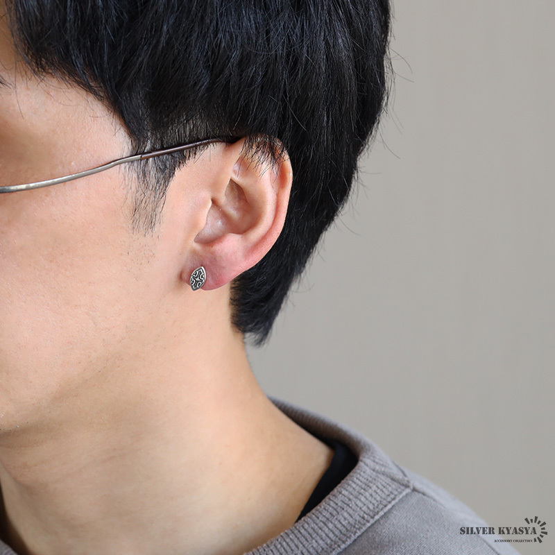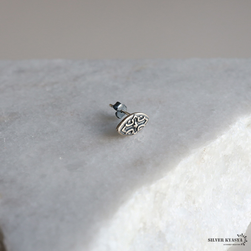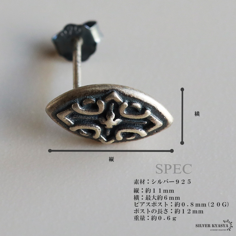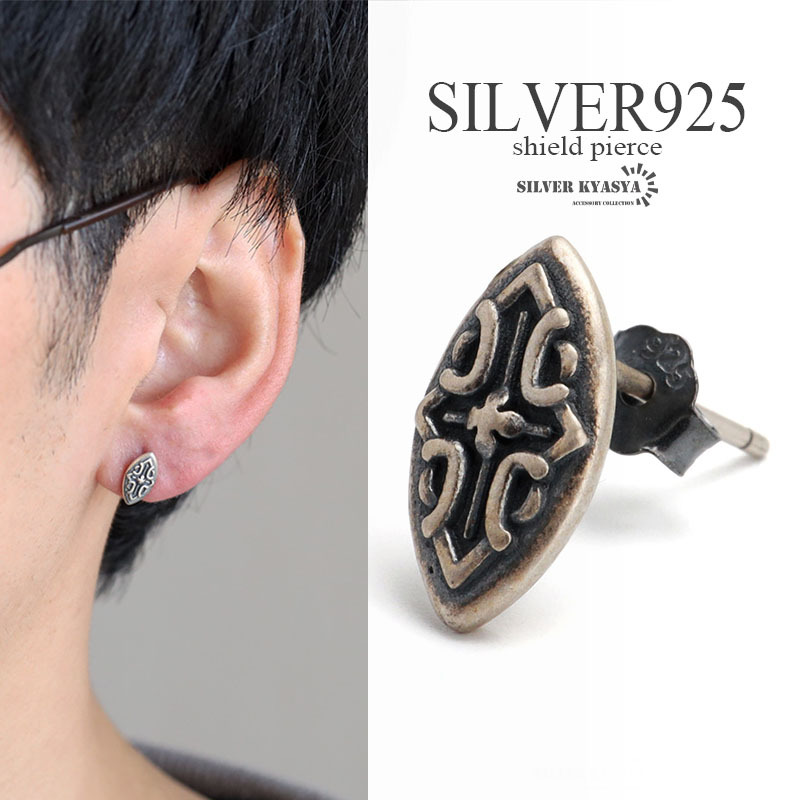 シルバー925 盾 モチーフ ピアス シールドピアス アンティーク クロス シルバーピアス 燻し加工 金属アレルギー対応 片耳