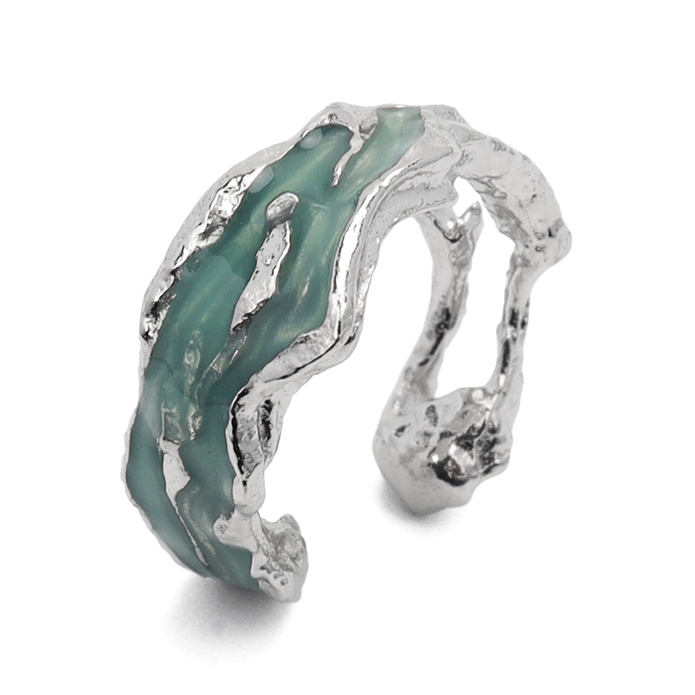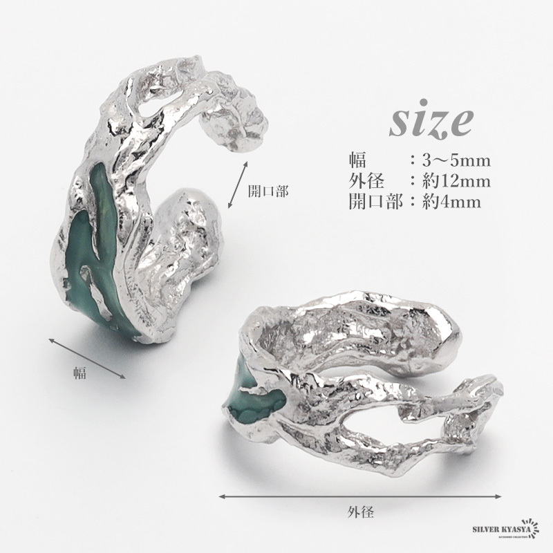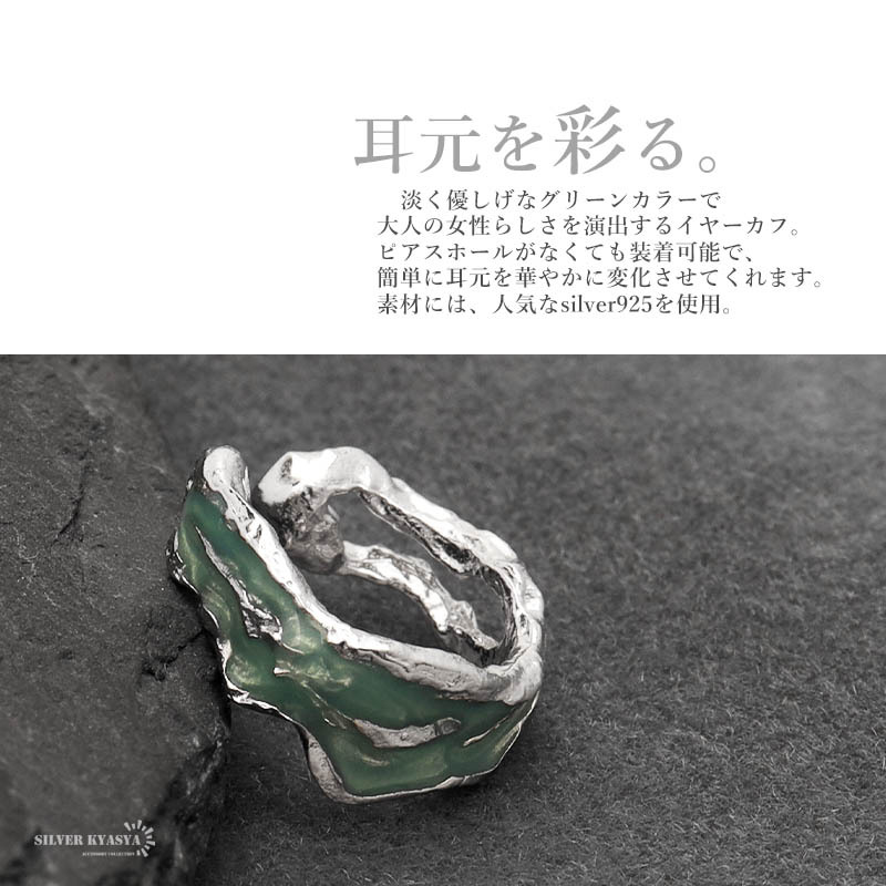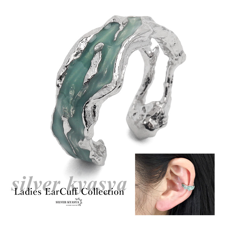 イヤーカフ グリーン 緑 イヤリング イヤカフ シルバー925 エナメル 上品 メタル 2連 シルバー 片耳用 金属アレルギー対応