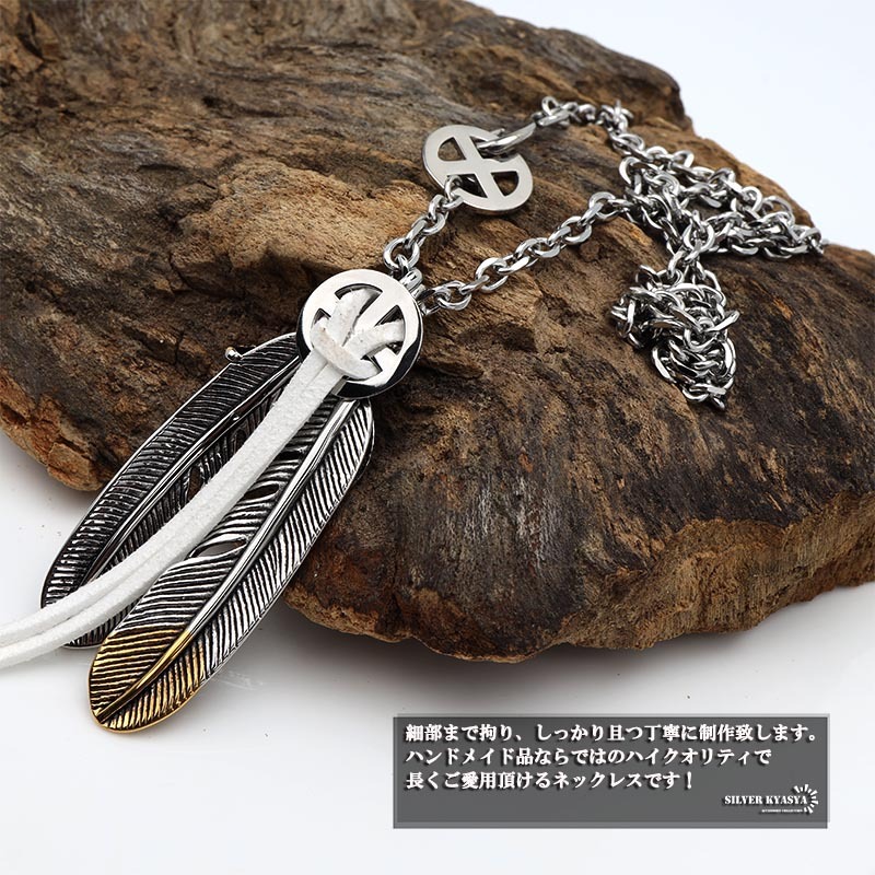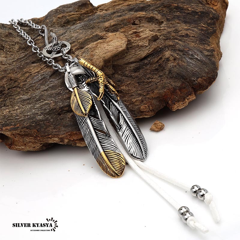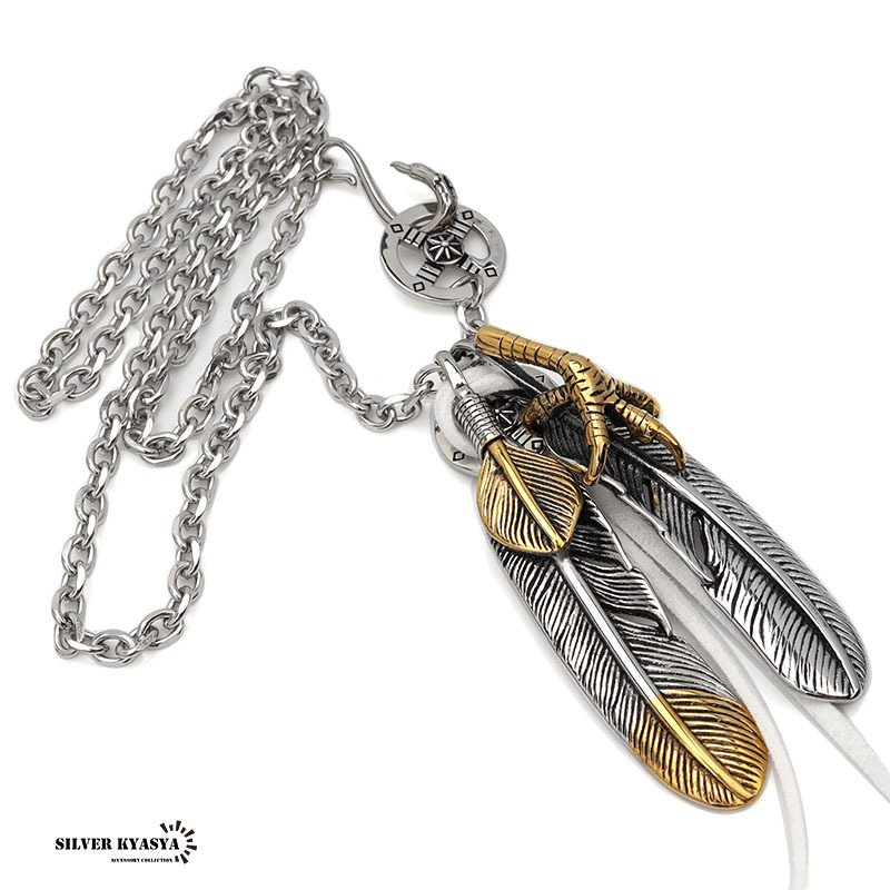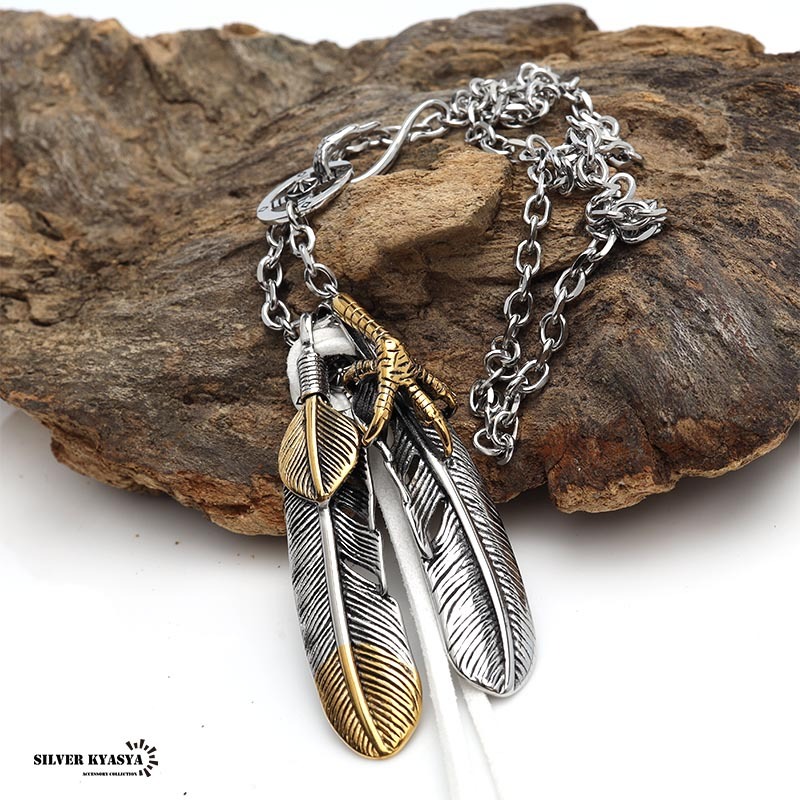 316L ダブル フェザーネックレス メンズ シルバー 太陽 金爪 フェザーネックレス 特大 フェザー 羽根 カスタムネックレス