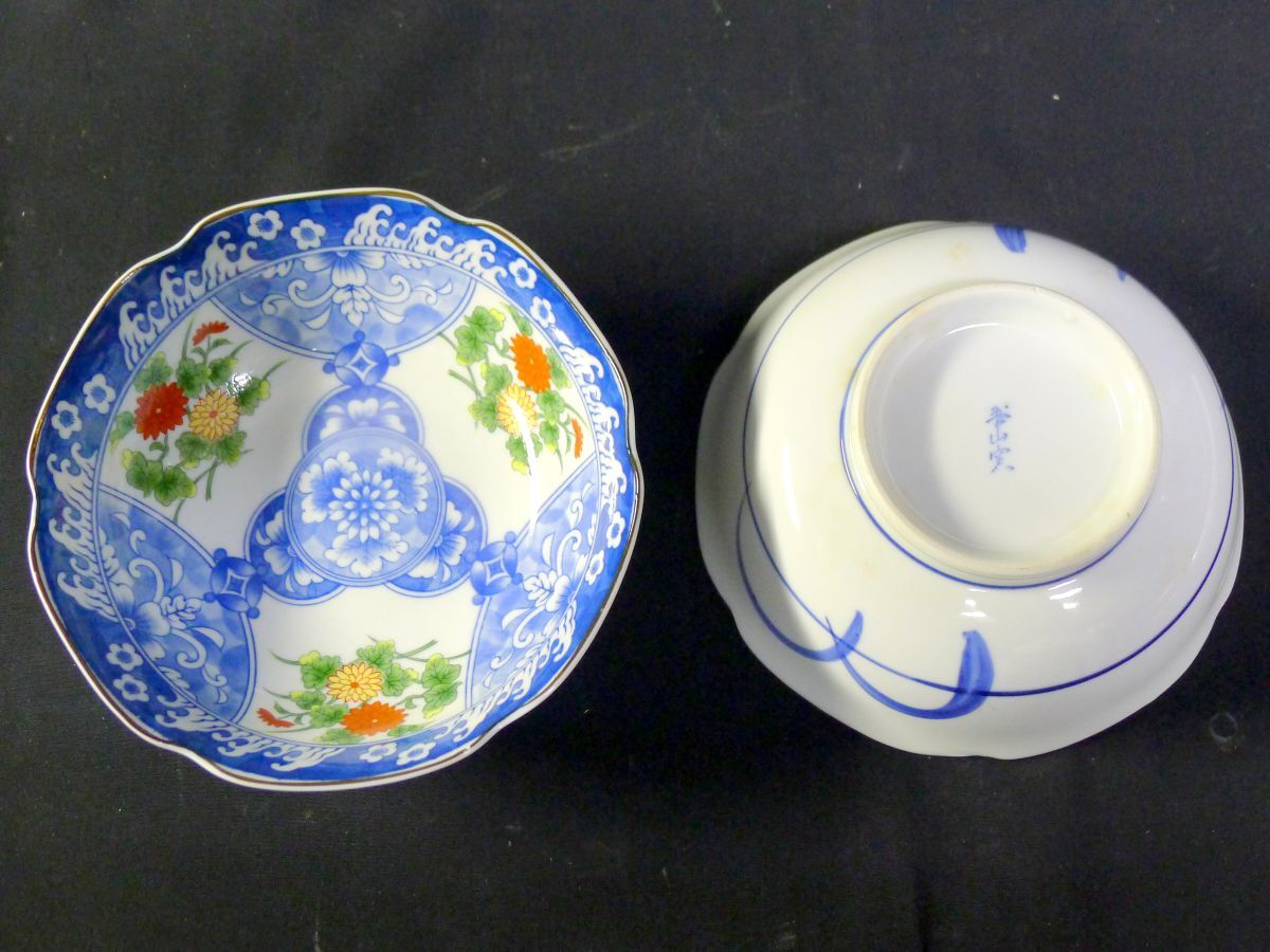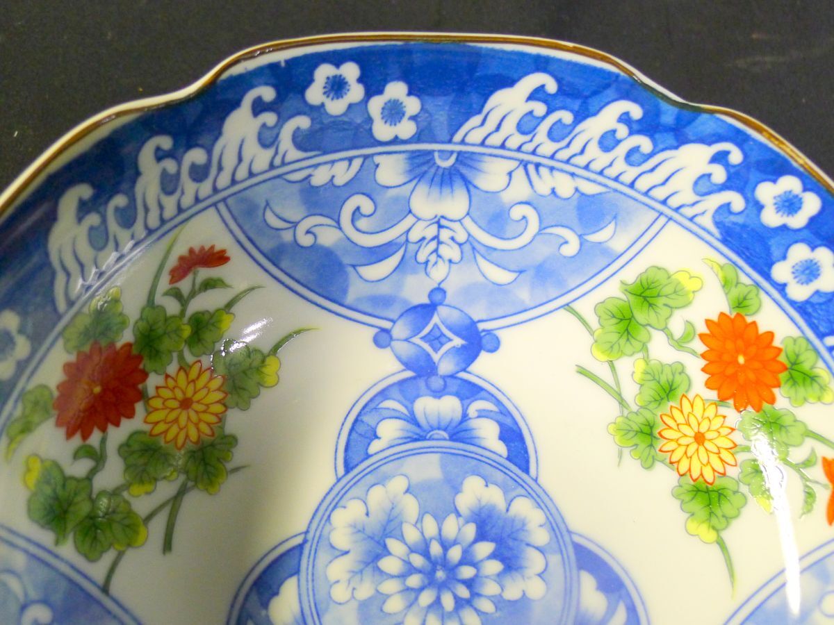 染錦 染付色絵 菊文 輪花