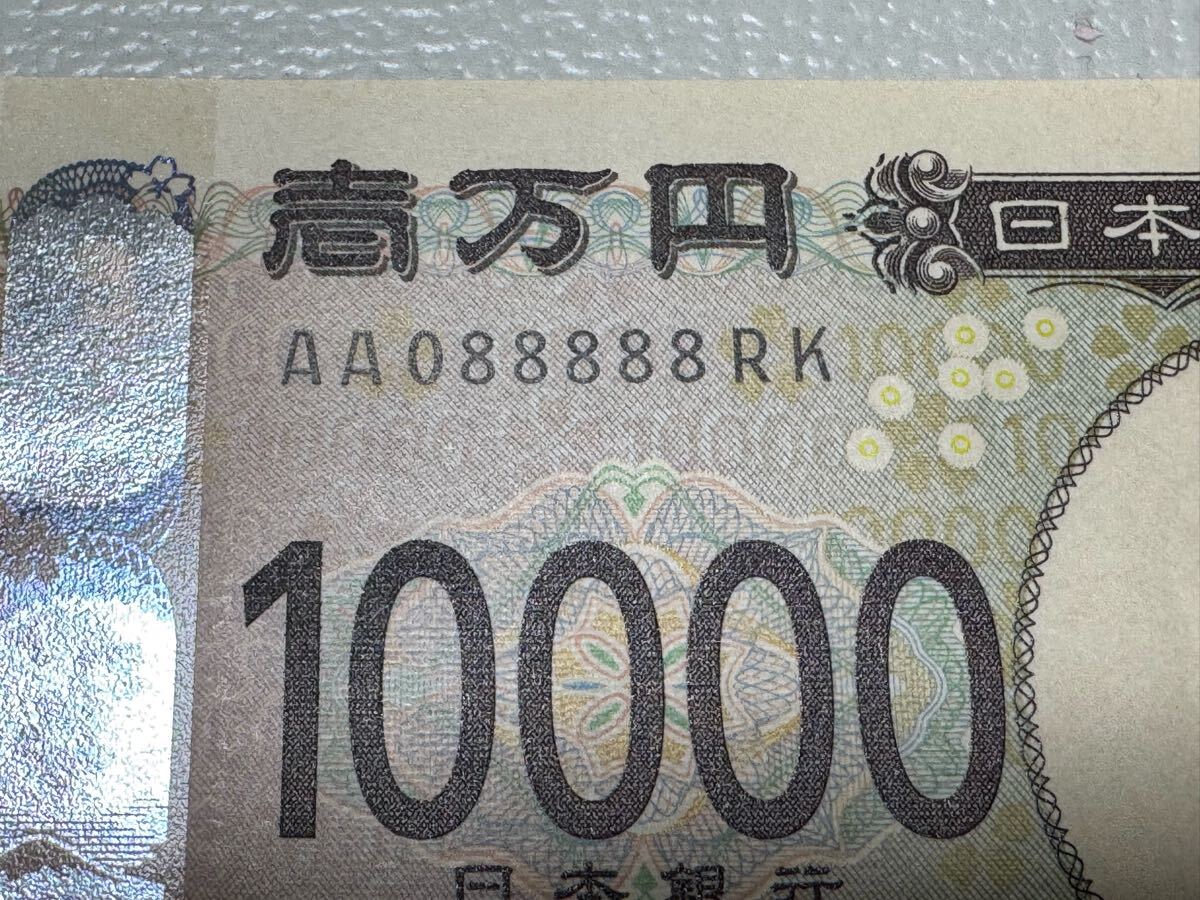 新紙幣 一万円札 ゾロ目崩れ AA088888RK 渋沢栄一 珍番 1万円 10000円 壱万円