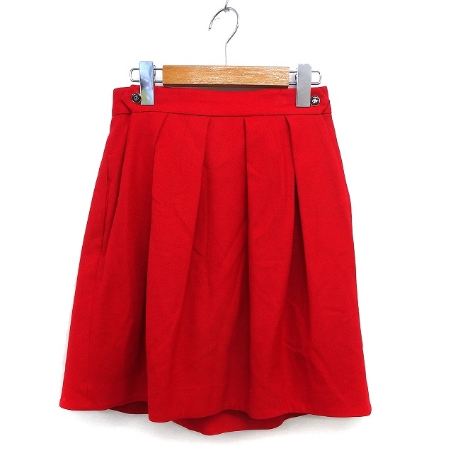 マカフィー MACPHEE トゥモローランド フレア スカート ひざ丈 ウール タック 無地 36 赤 レッド /NT35 レディース