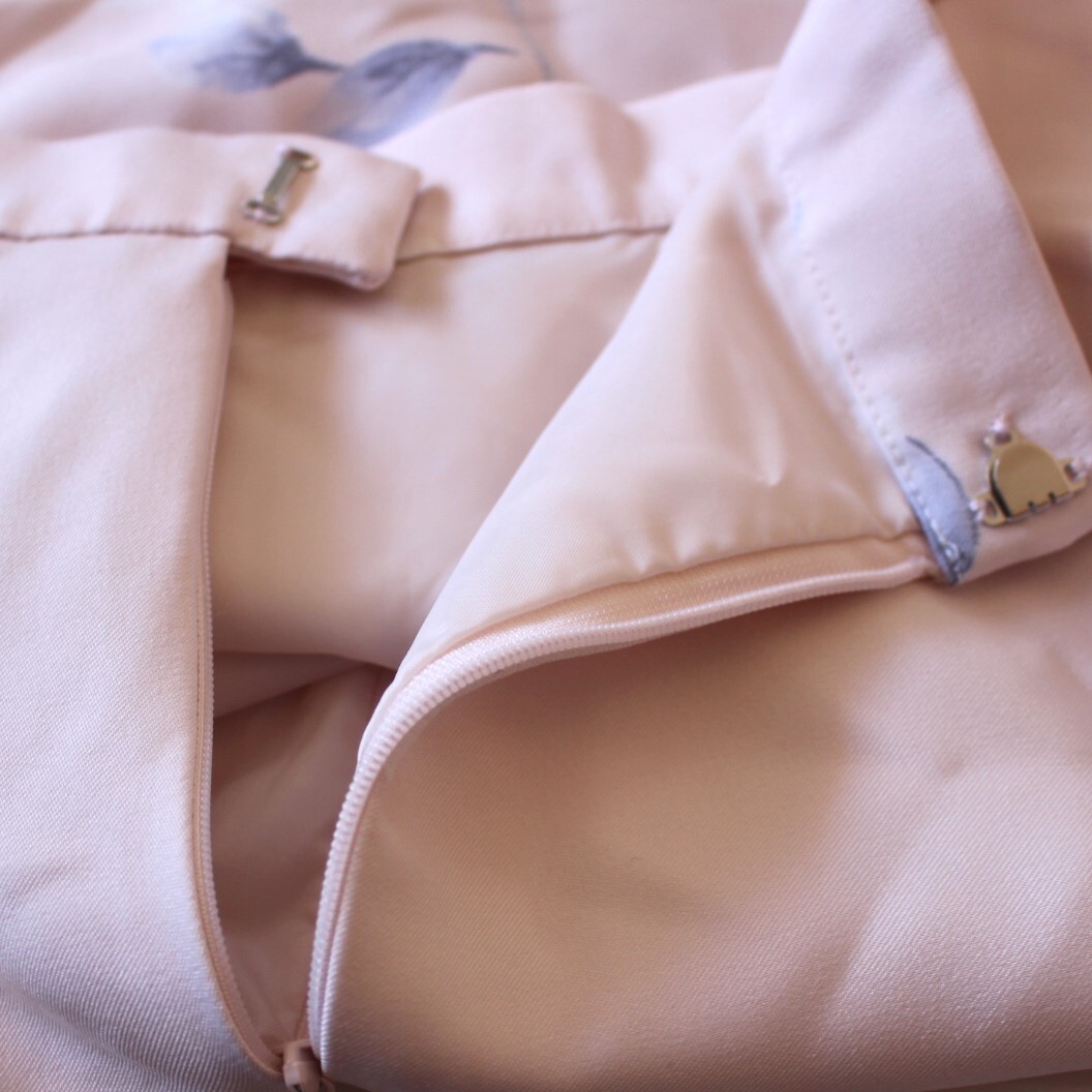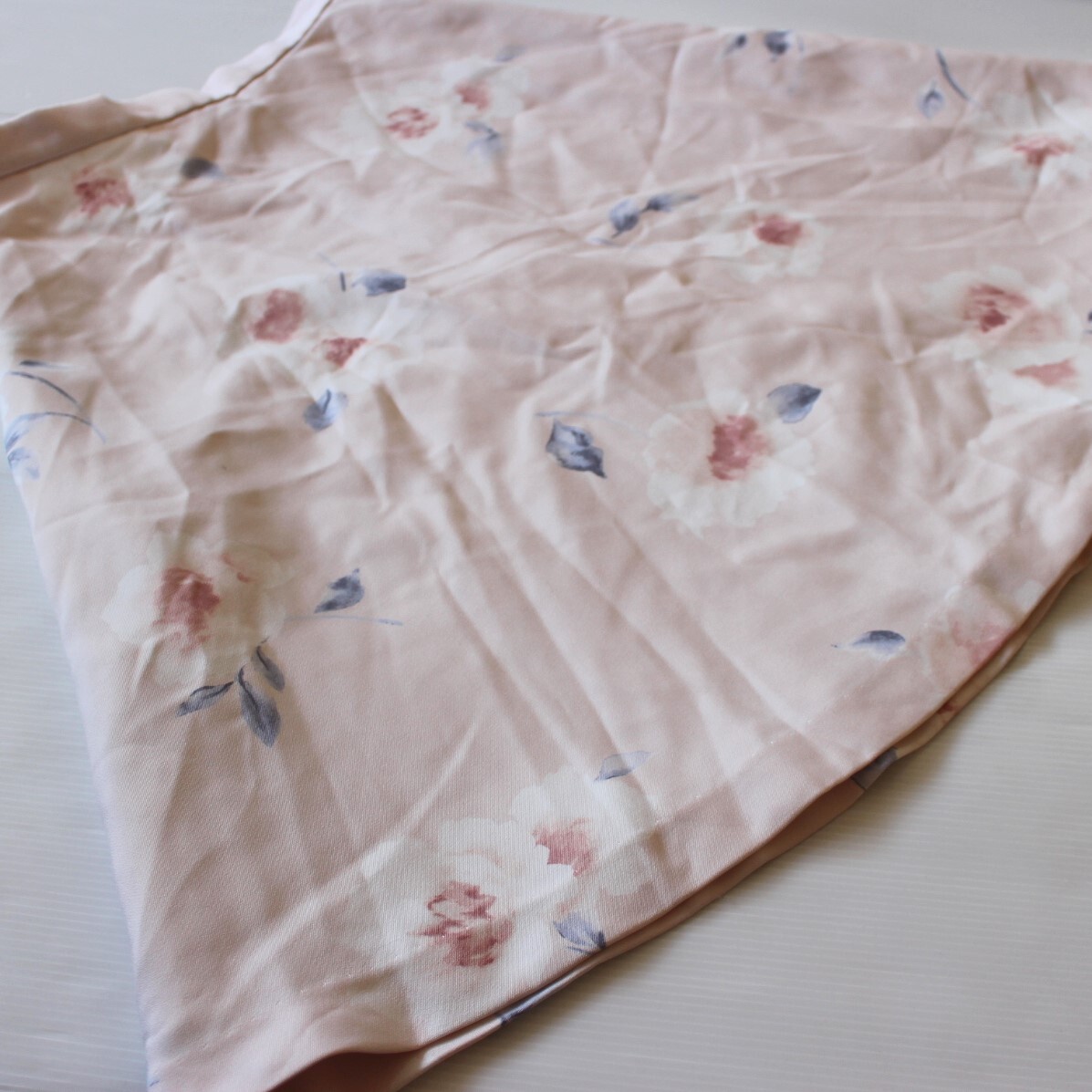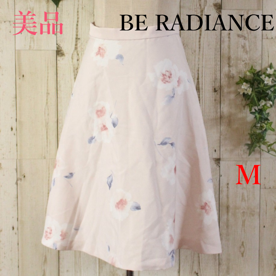 美品★BE RADIANCEビーラディエンス★淡ピンクパステル大花プリントフレアスカート Mサイズ 大人可愛いカガーリーフレアフェミニン 古着