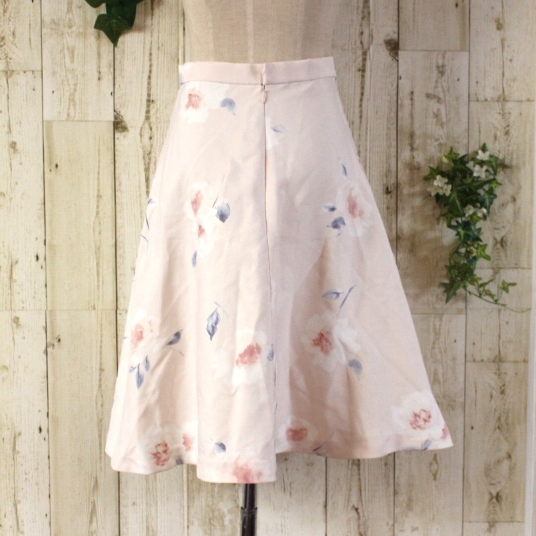 BE RADIANCE(ビーラディエンス)のライトピンクに淡いフラワープリントがフェミニンなフレアスカート。