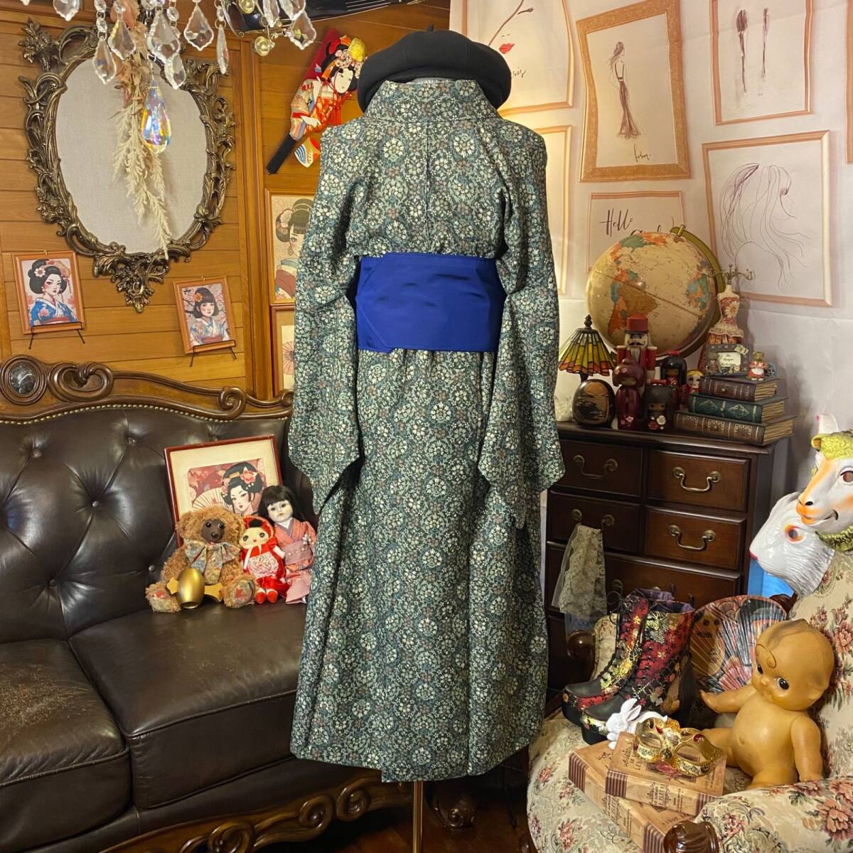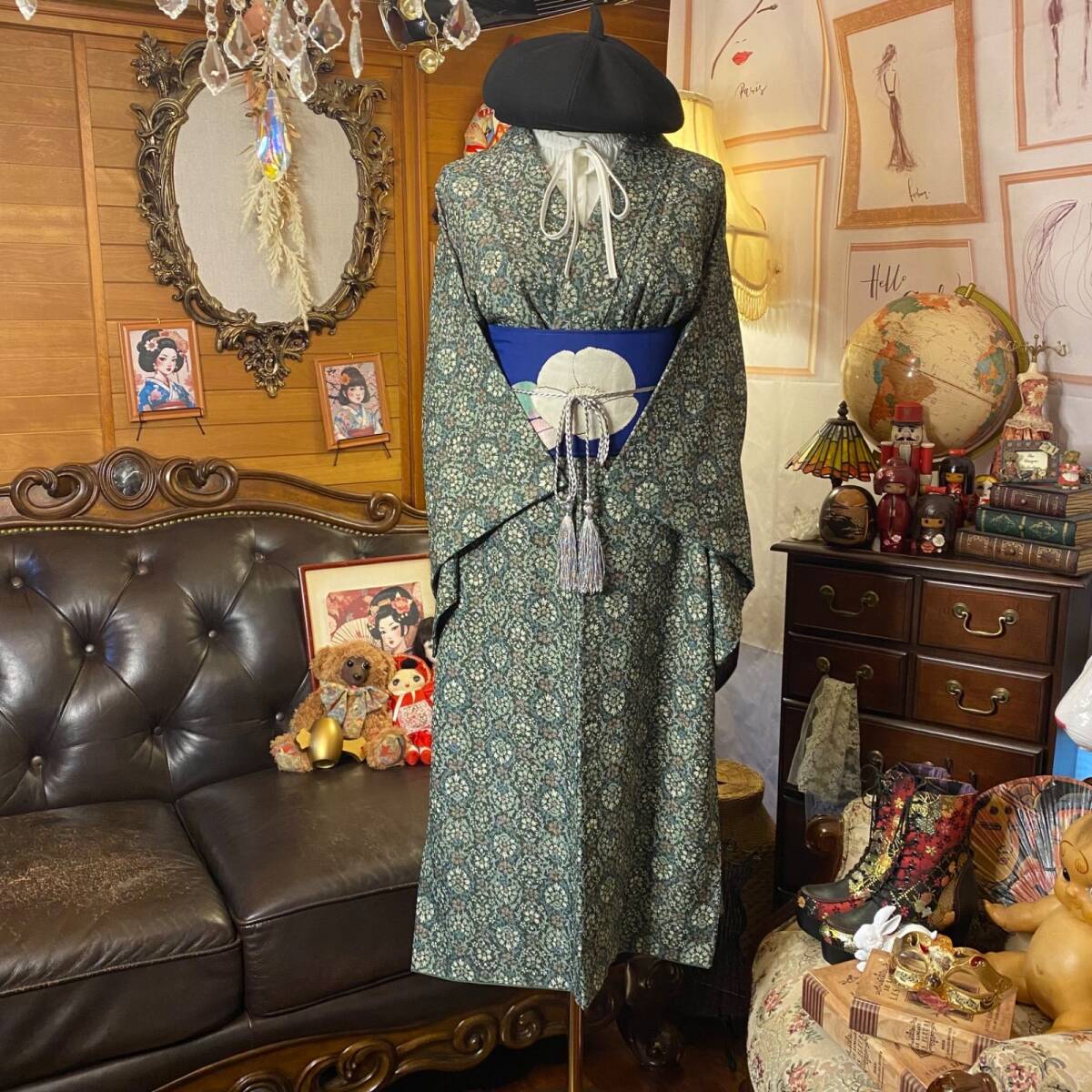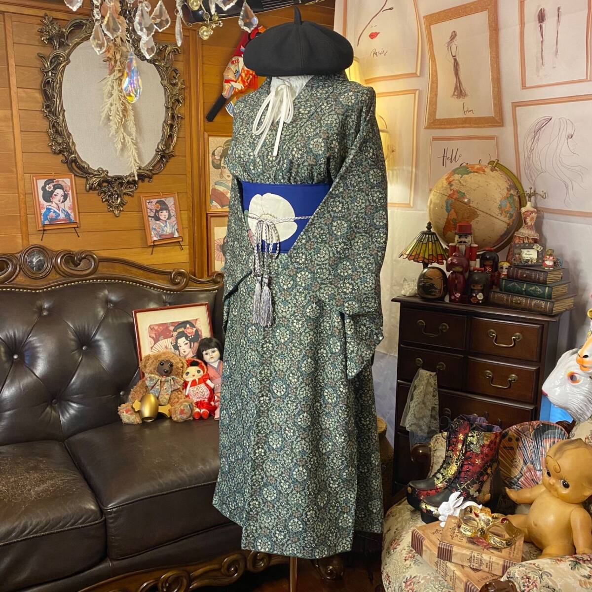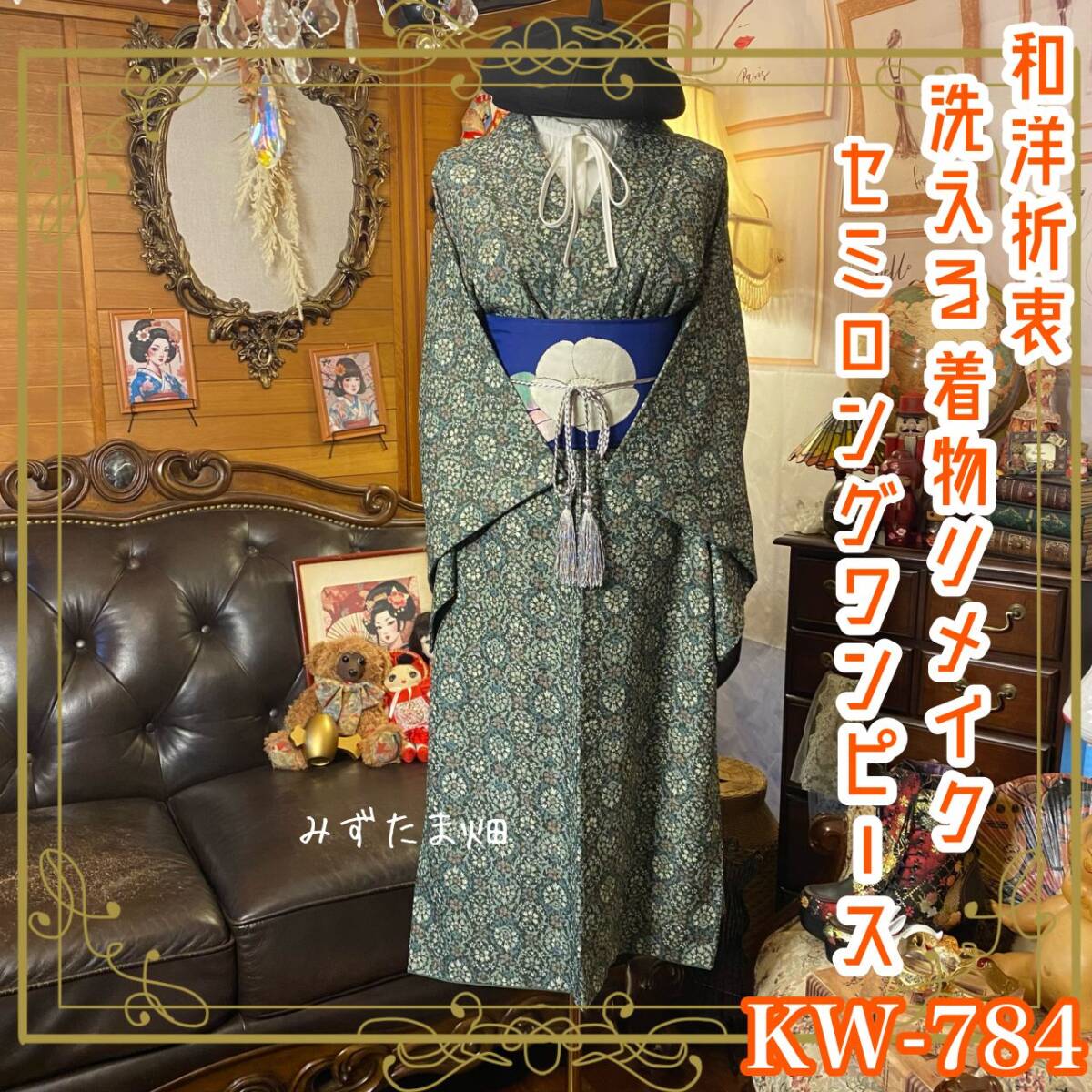 【 着物リメイク セミロング ワンピース ドレス|洗える 化繊 名古屋帯サッシュベルト付き|和洋折衷ドレスで特別な一日を |ハンドメイド 上品で控えめながらも力強い存在感 KW-784】