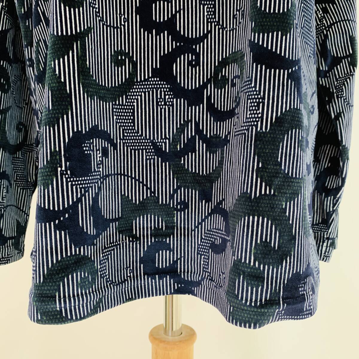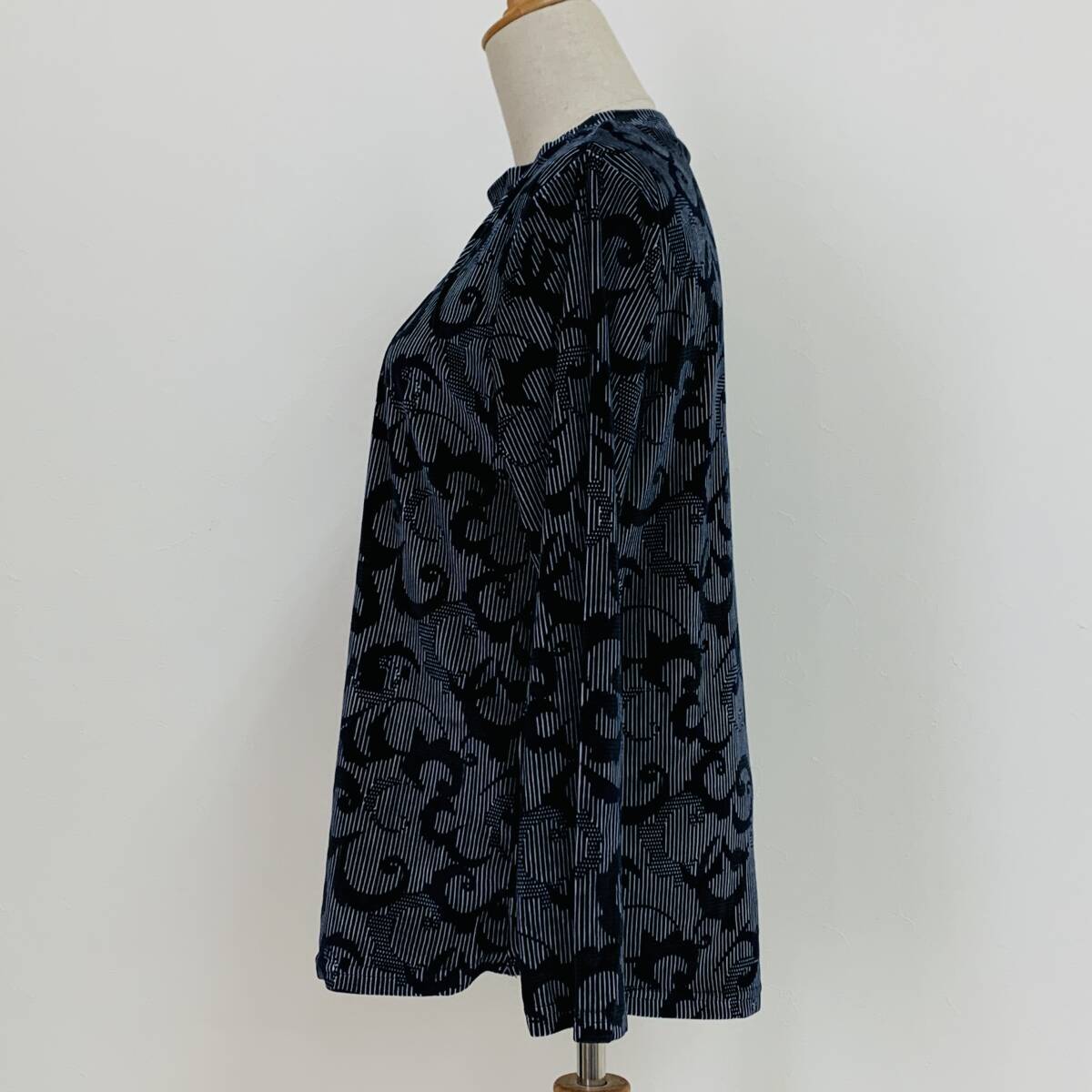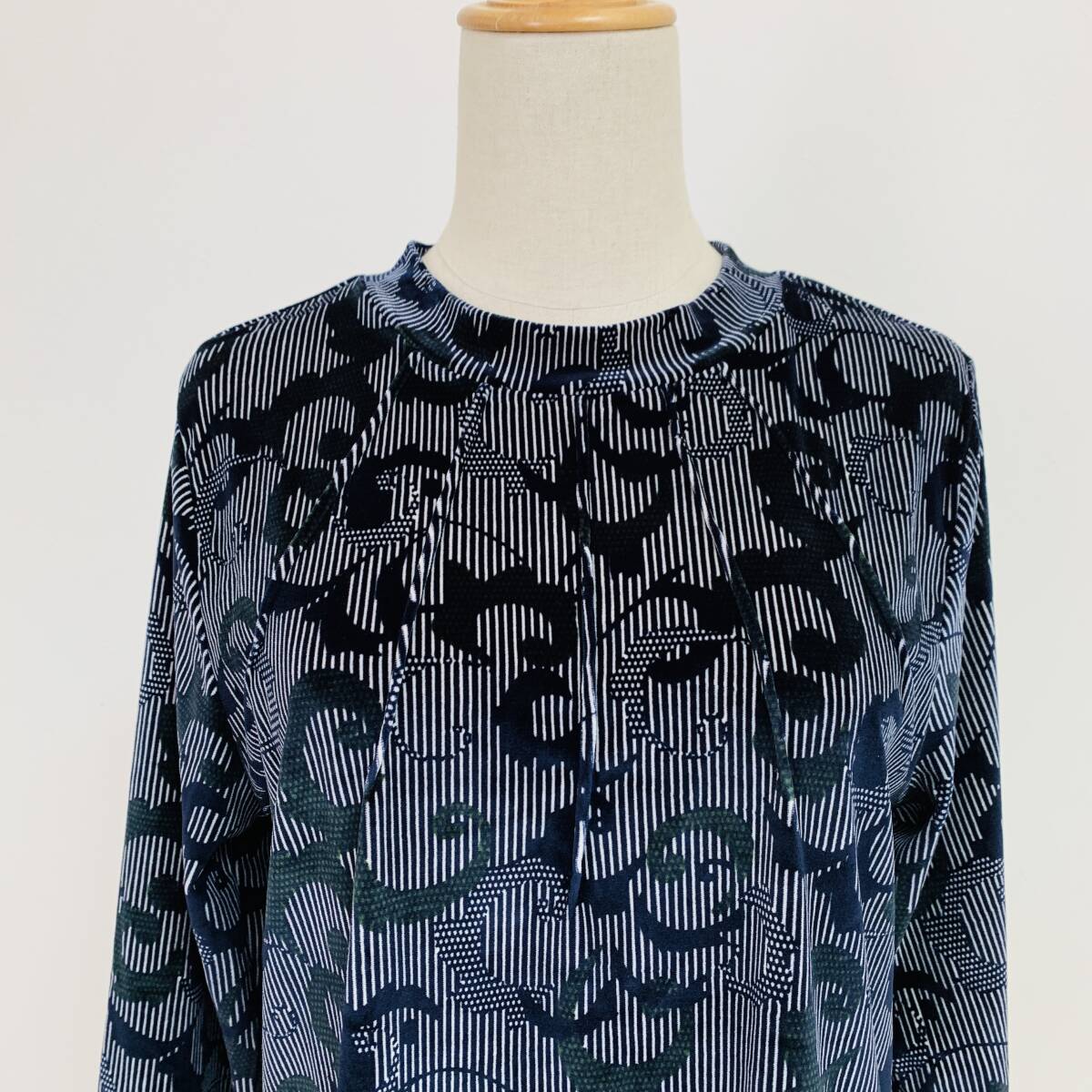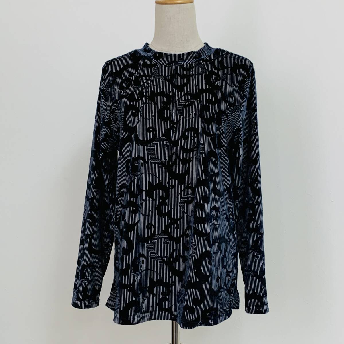 YH2363 Fems wheel レディース 総柄 長袖 シャツ ベロア調 ネイビー 紺 M~Lサイズ ブラック 黒 ハイネック お洒落 エレガント 万能 USED