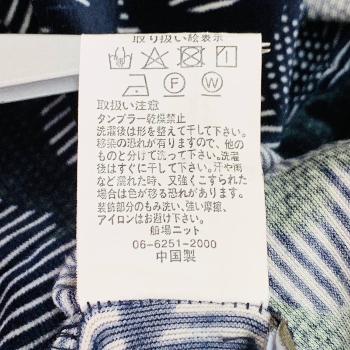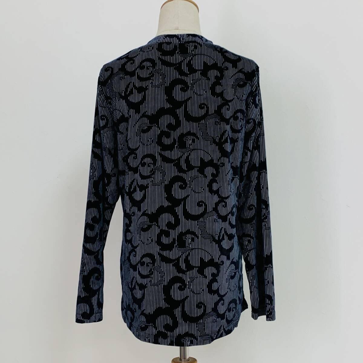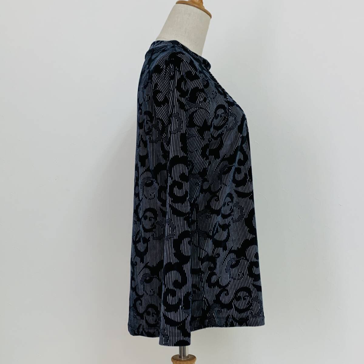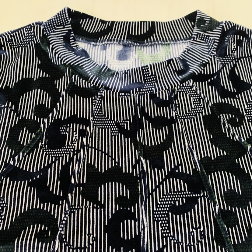 YH2363 Fems wheel レディース 総柄 長袖 シャツ ベロア調 ネイビー 紺 M~Lサイズ ブラック 黒 ハイネック お洒落 エレガント 万能 USED