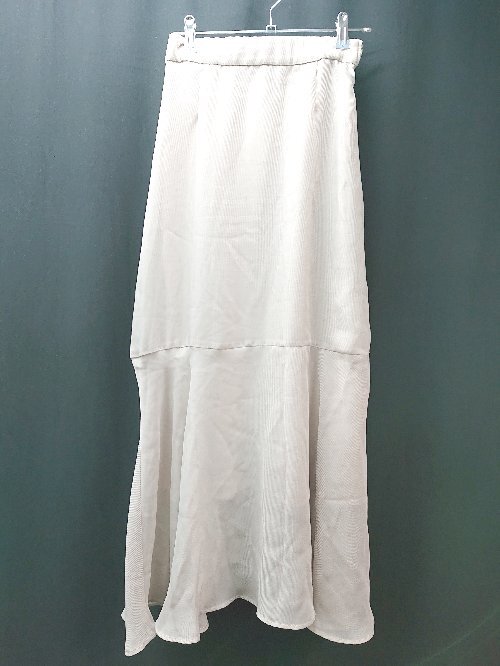 ◇ AUNT MARIE'S バックウエストゴム サイドファスナー ロング フレアー スカート サイズFREE ライトベージュ レディース E
