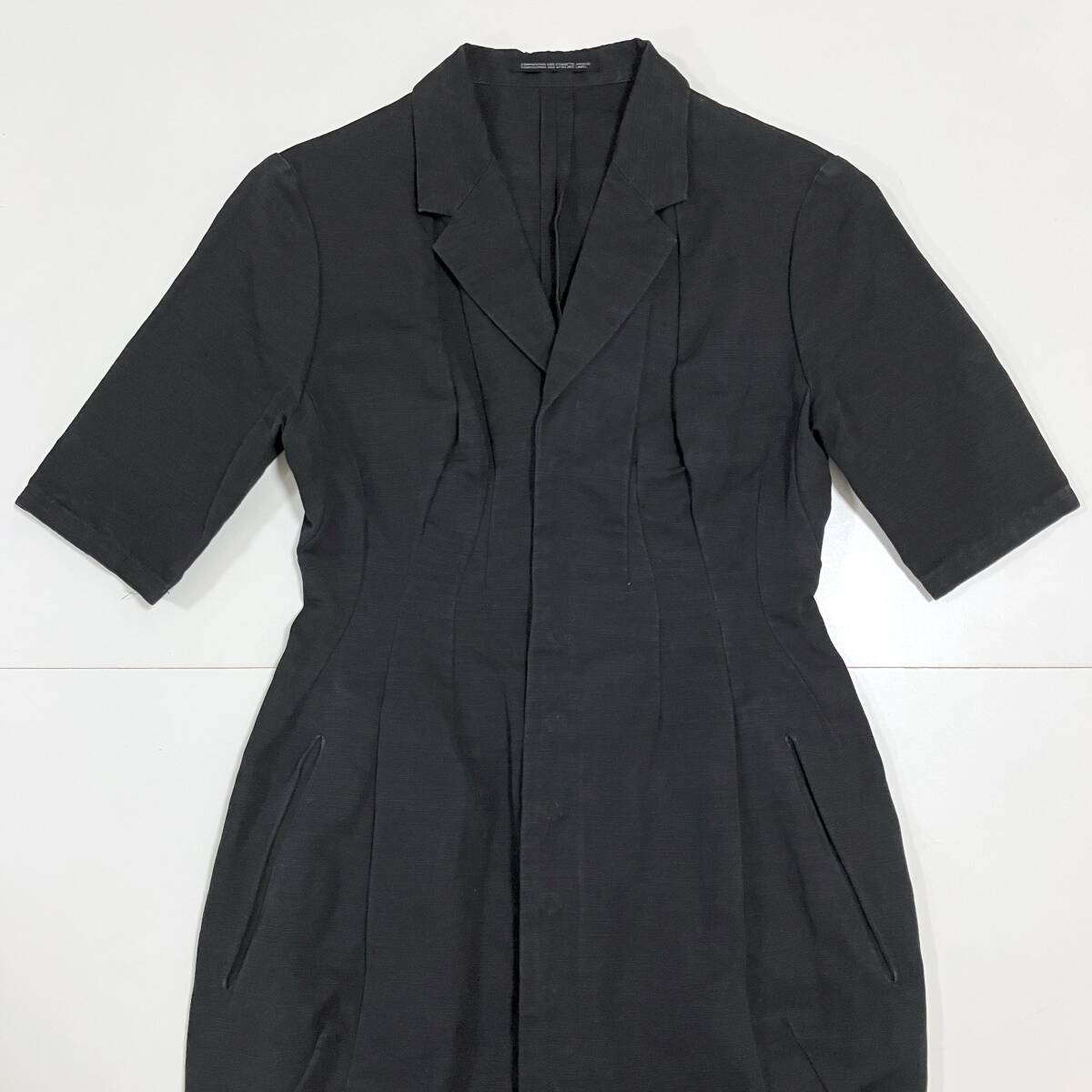 90s Yohji Yamamoto Femme 変形 コクーン 半袖 ワンピース コットンリネン ブラック 黒 Sサイズ ヨウジヤマモト VINTAGE archive 4110074
