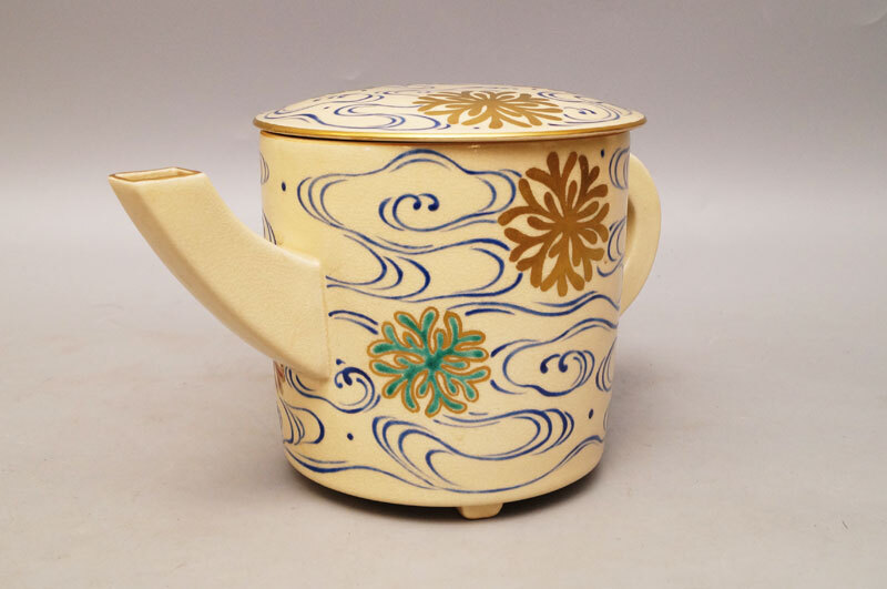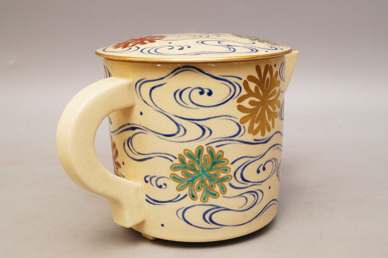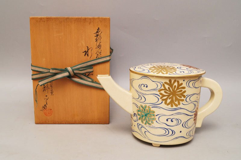 【真作】杉田祥平◆色絵仁清海松画 水注 清宋寺窯 水次 共箱 茶道具 金彩 京焼-761