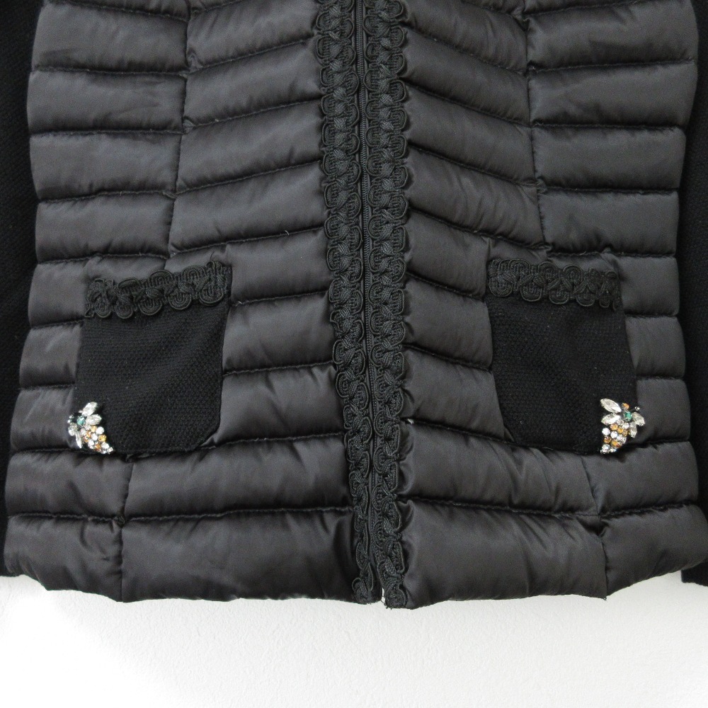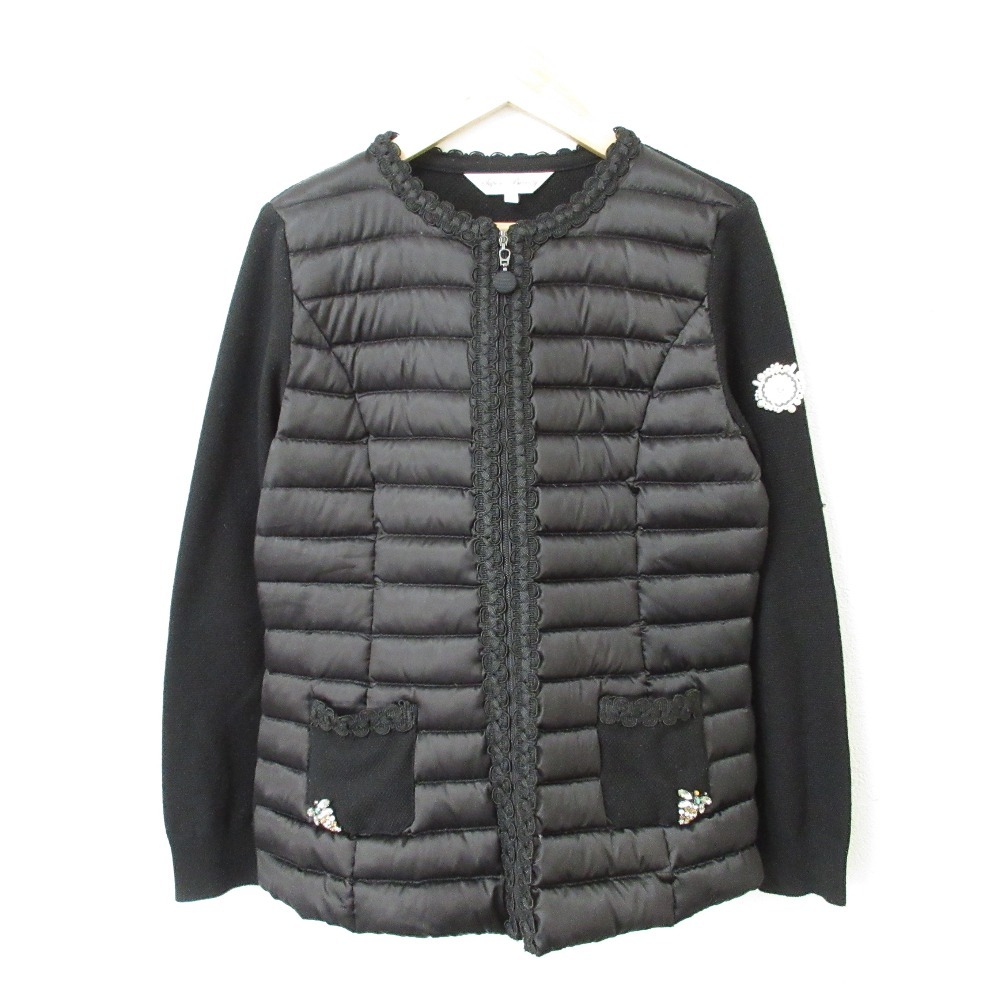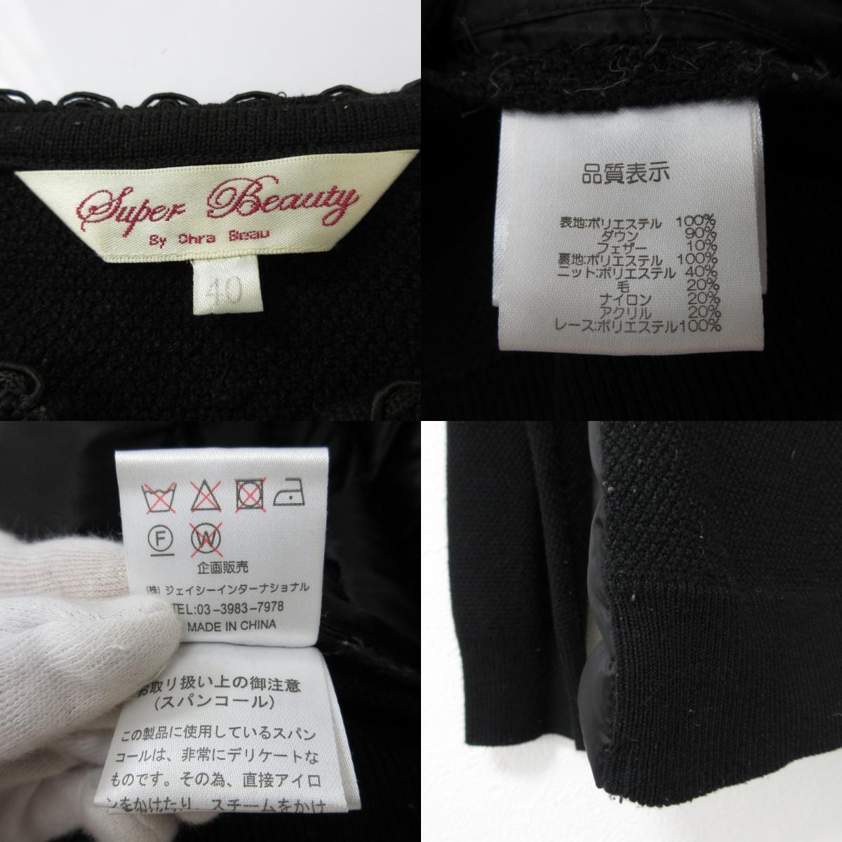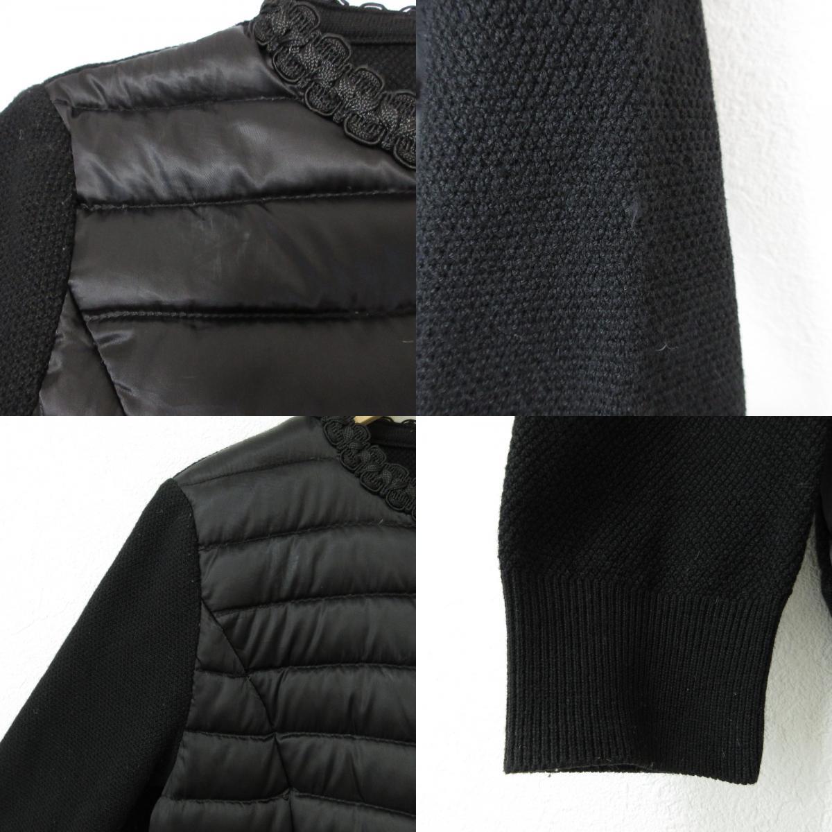 美品 Super Beauty スーパービューティー 刺繍 ビジュー ニットドッキング ジップアップ ノーカラー ダウンジャケット 40 ブラック