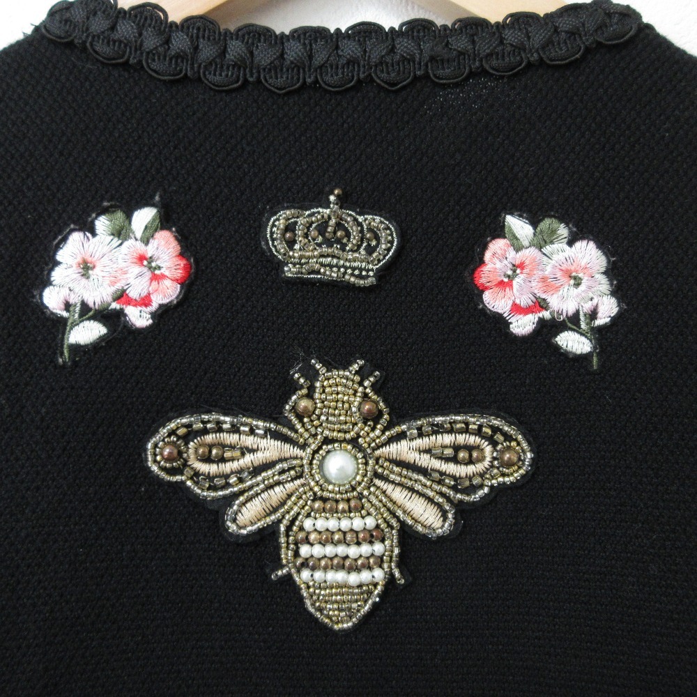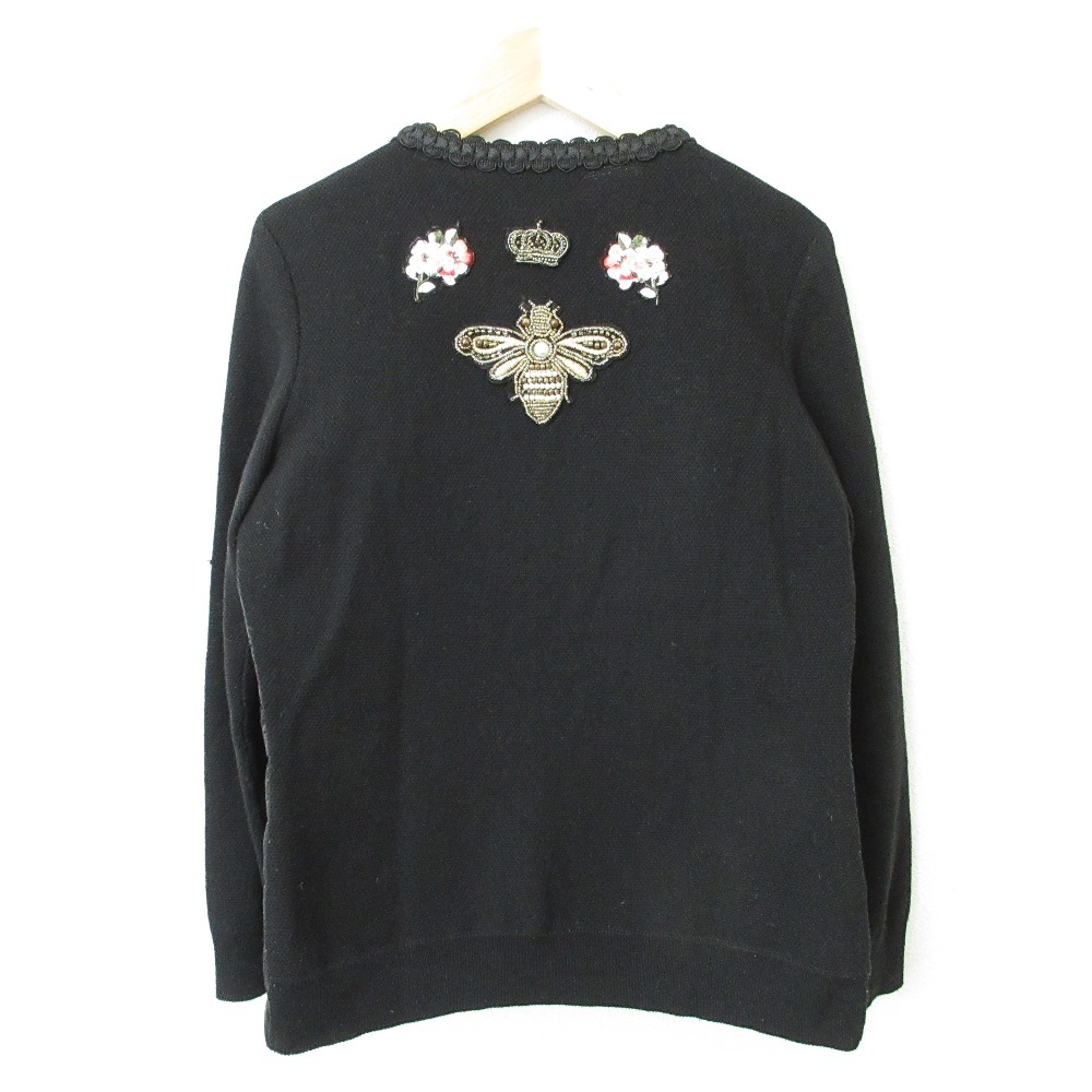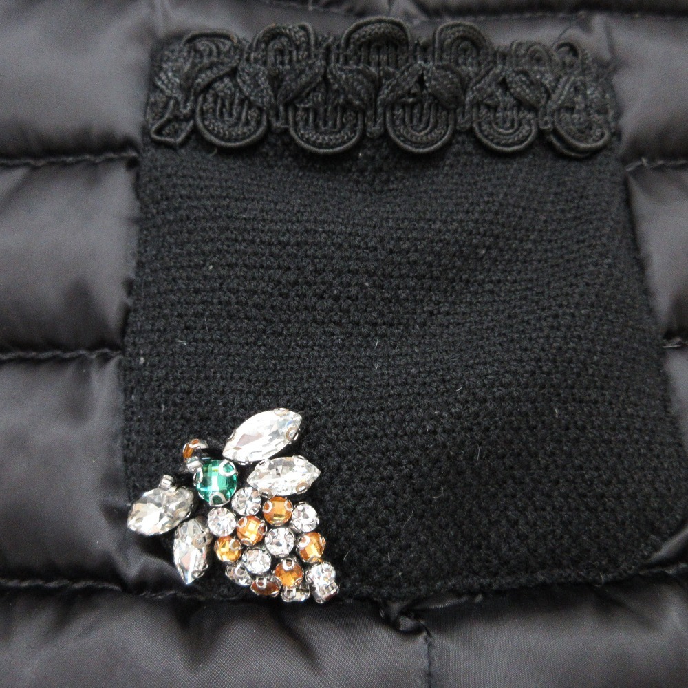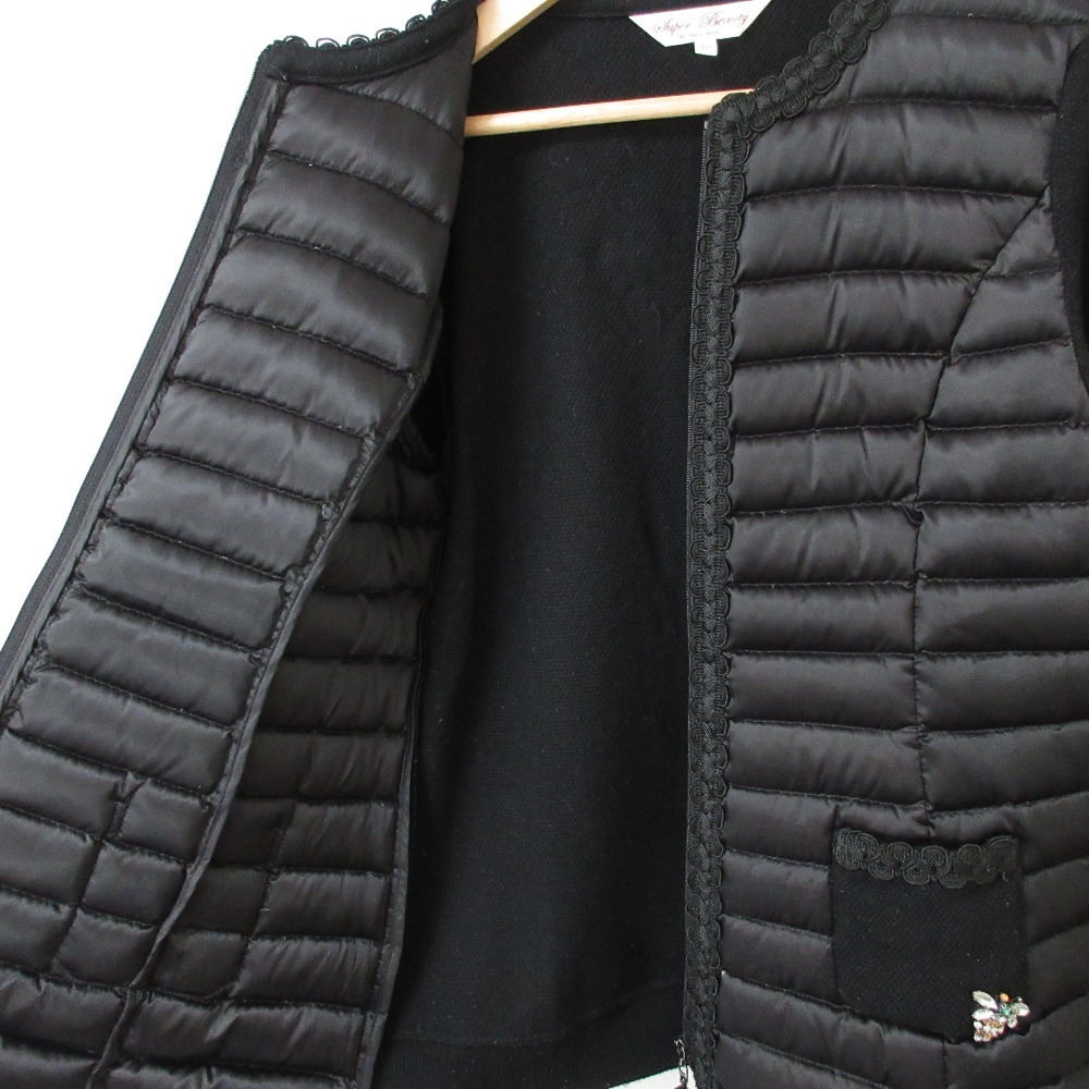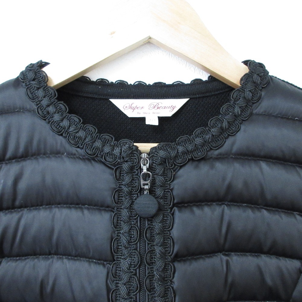 美品 Super Beauty スーパービューティー 刺繍 ビジュー ニットドッキング ジップアップ ノーカラー ダウンジャケット 40 ブラック