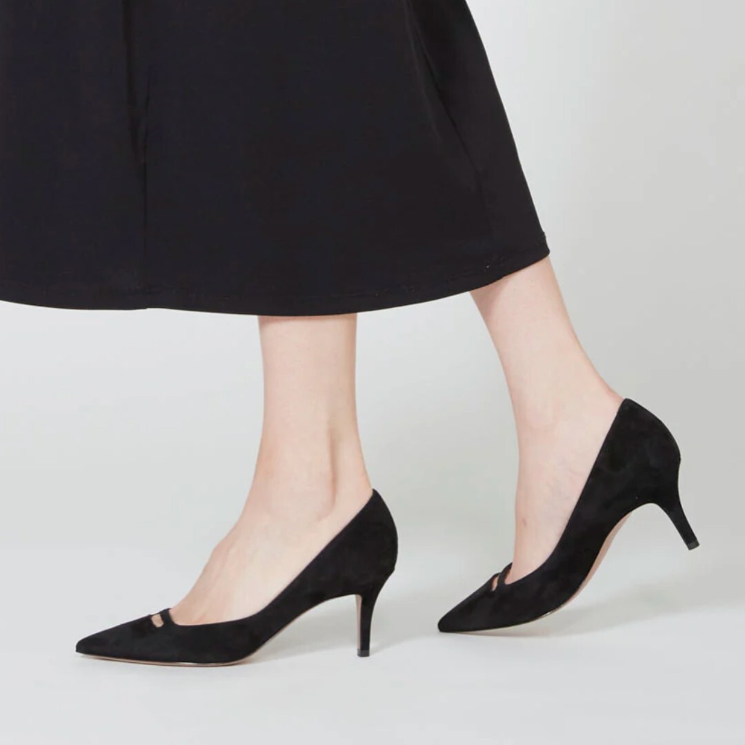 ベーシックなブラックパンプスはどのようなシーンでも取り入れやすい一足です。