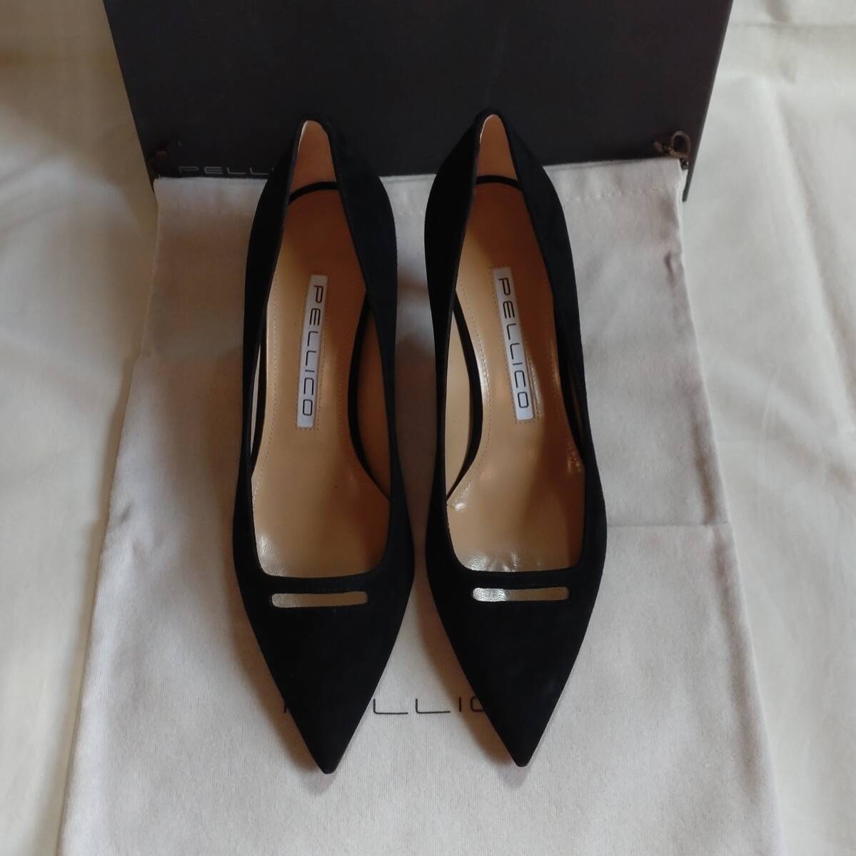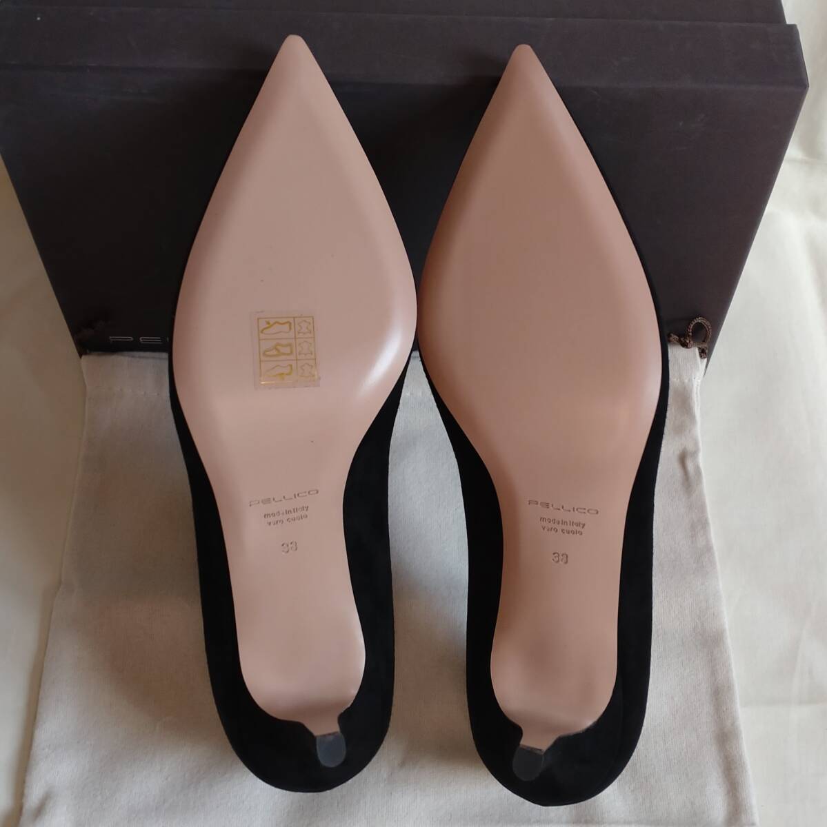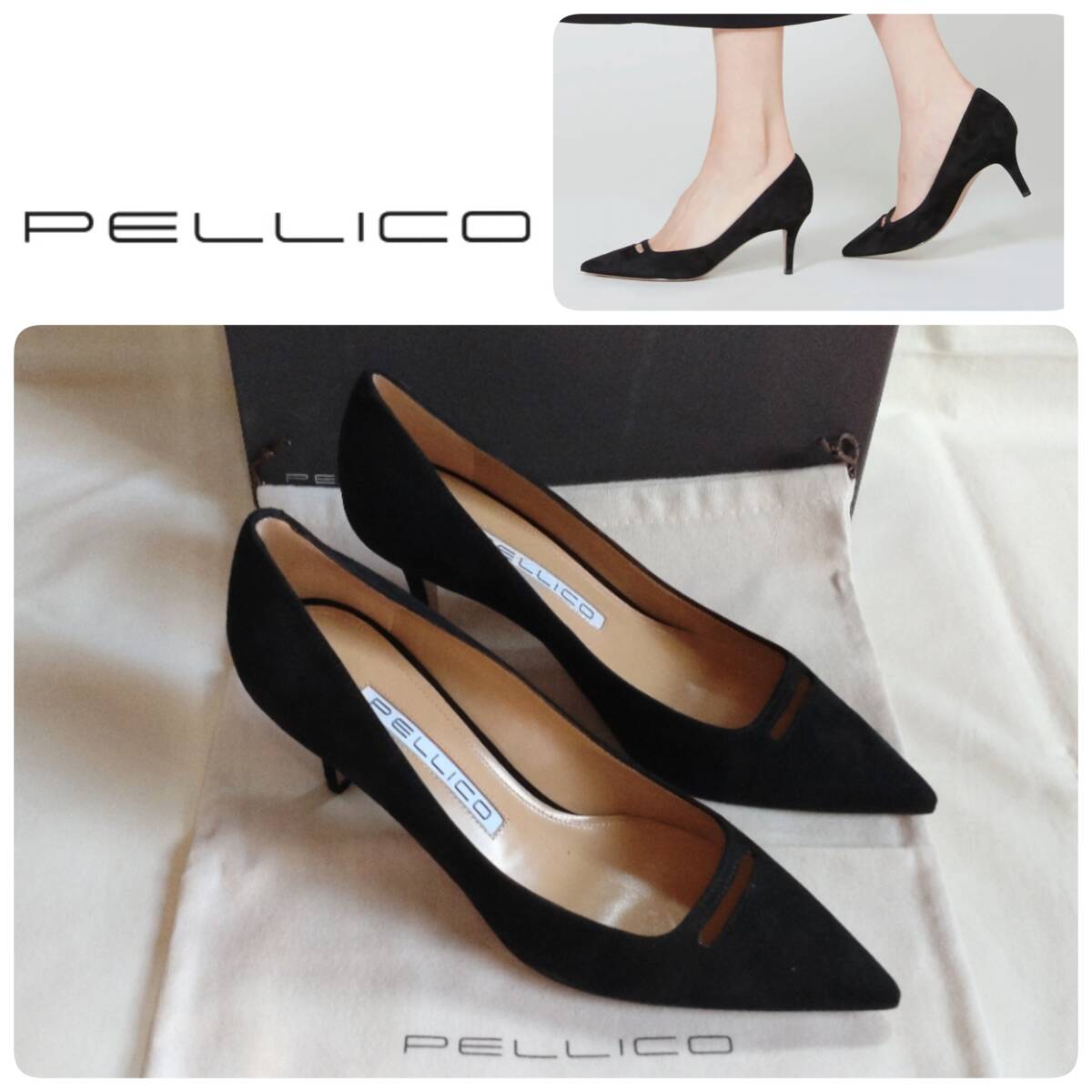 定価69300円 新品 PELLICO ペリーコ 定番 ANIMA アネッリ スエード レザー パンプス 6.5 ブラック 38/25cm 結婚式 パーティー