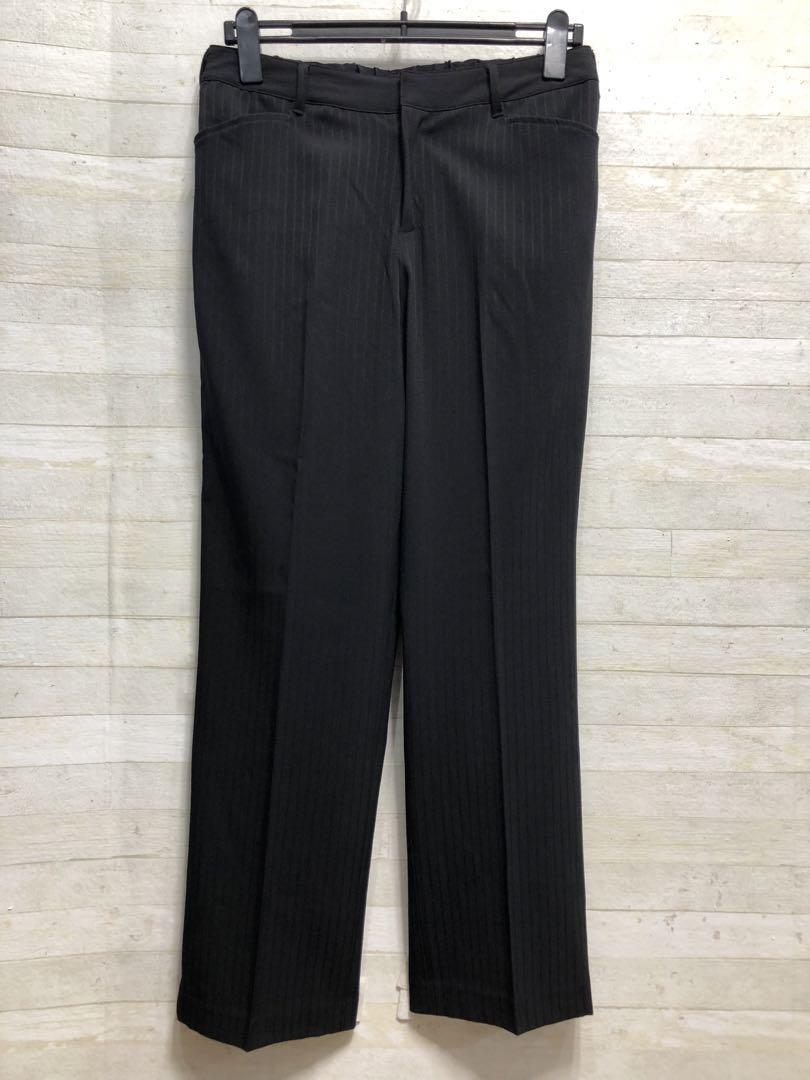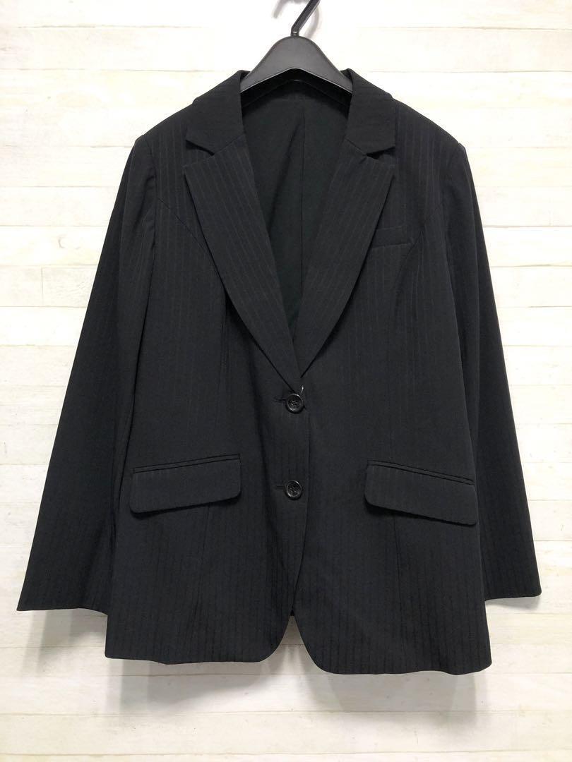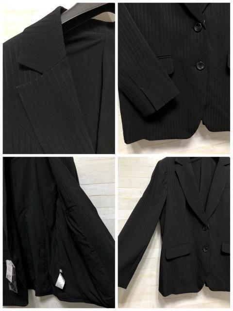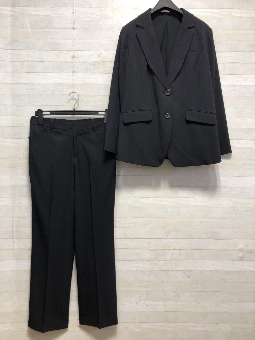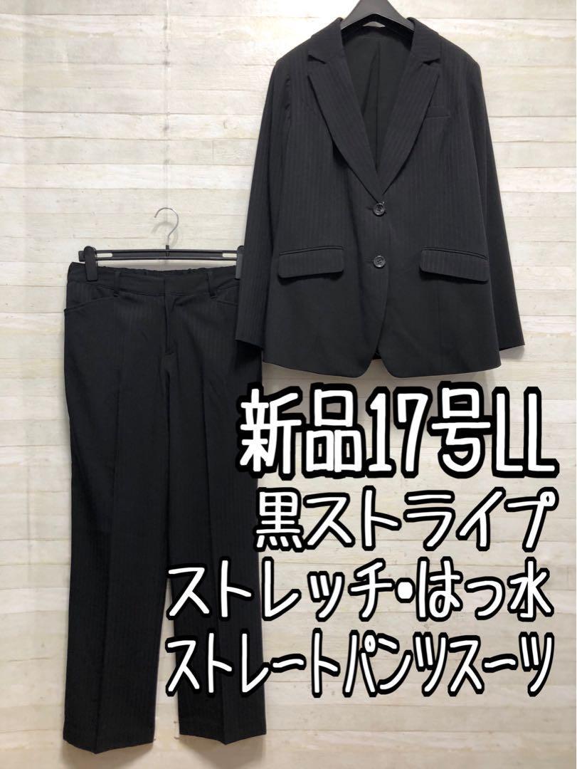 新品☆17号LL♪黒系ストライプ♪ストレッチパンツスーツ♪お仕事・通勤〇G270