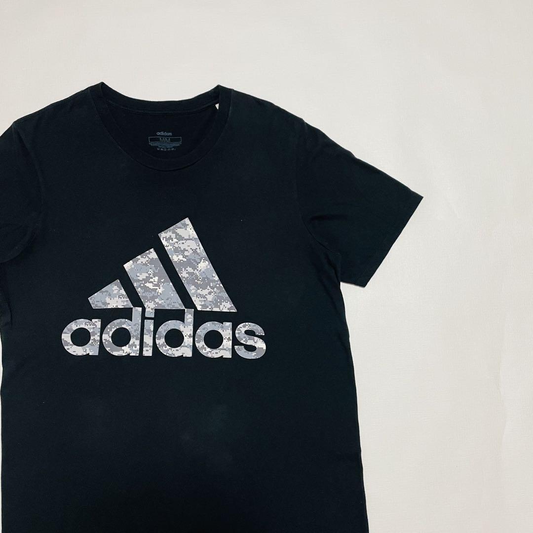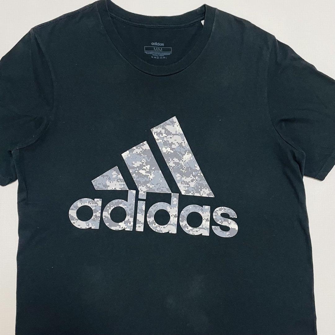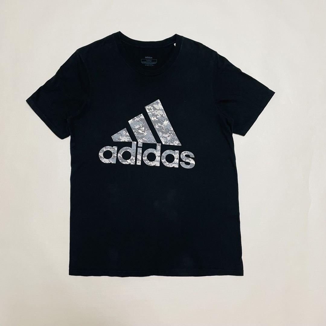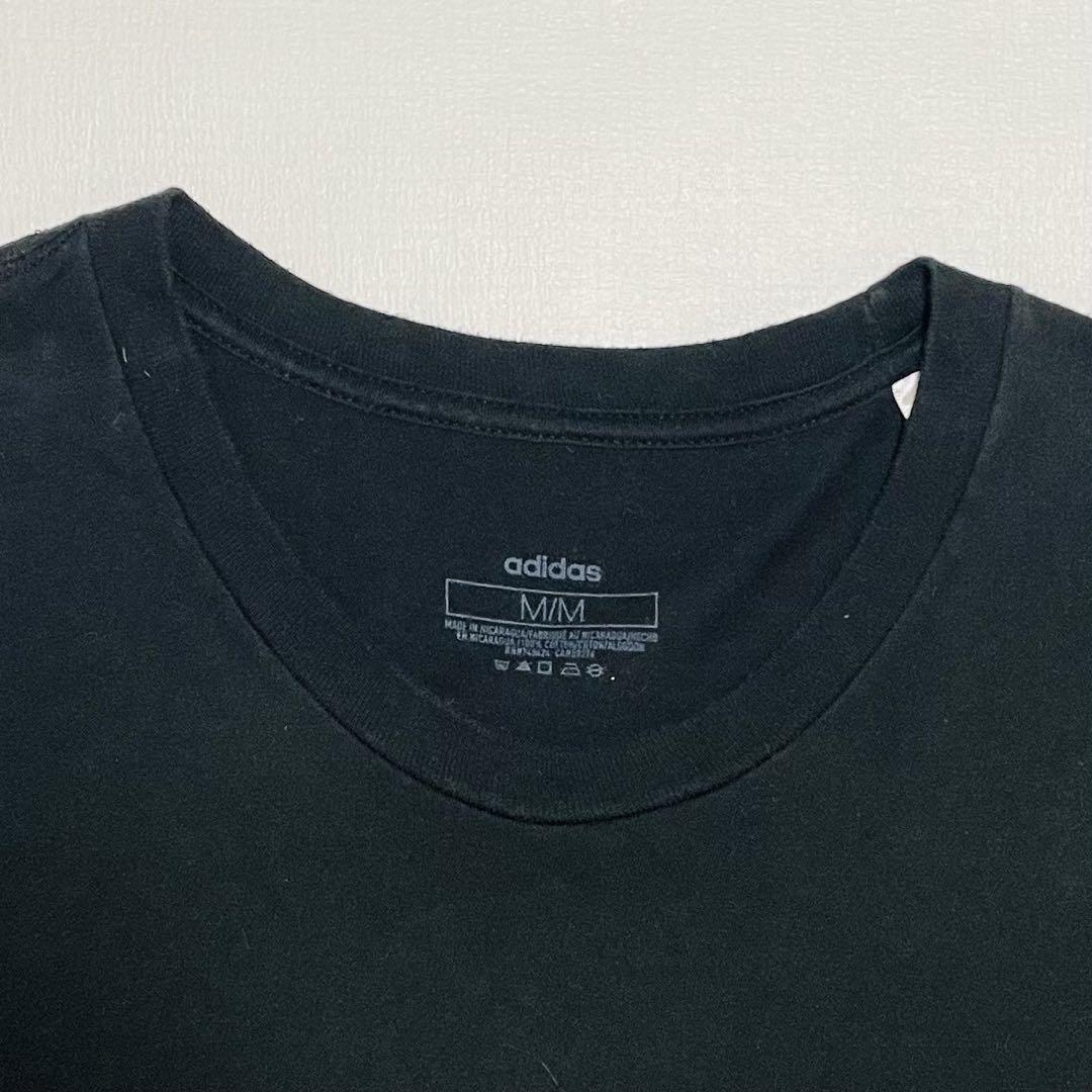 USA 古着 Tシャツ adidas アディダス ロゴ プリント 黒 ブラック クルーネック スポーツ メンズM クルーネック E0433