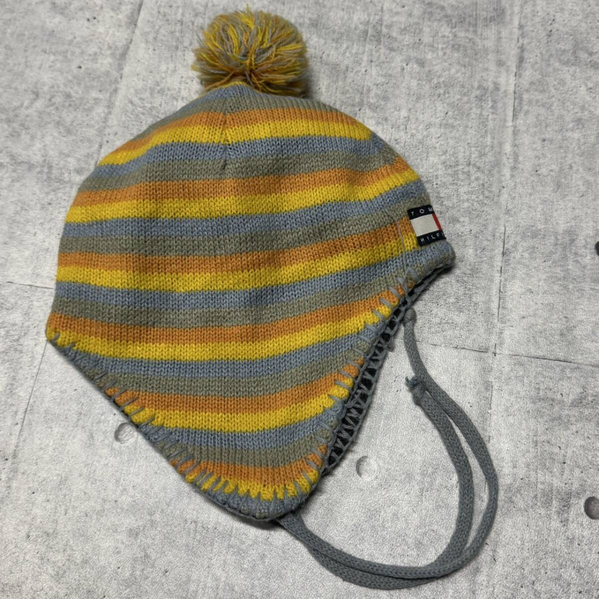 TOMMY HILFIGER ポンポン 耳当て付き ニット帽 ビーニー  トミーヒルフィガー ワッチ 裏地フリース キッズ ニットキャップ CAP 早4577