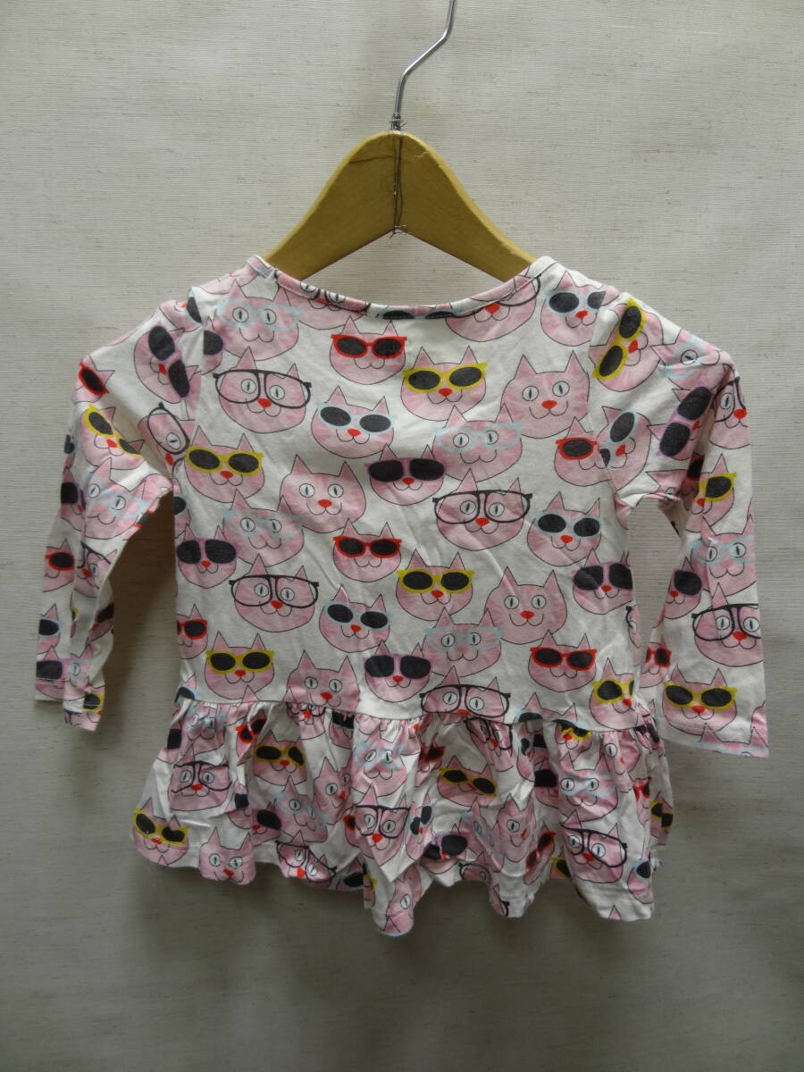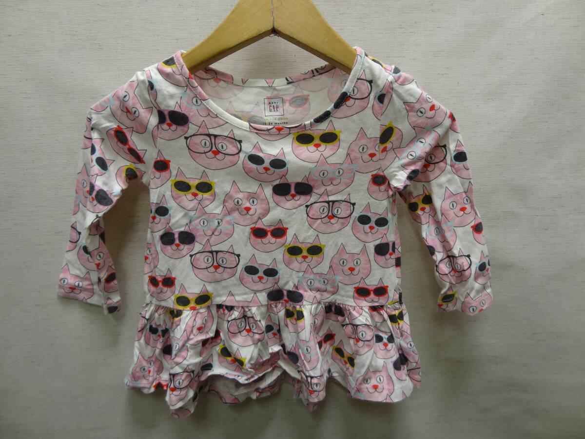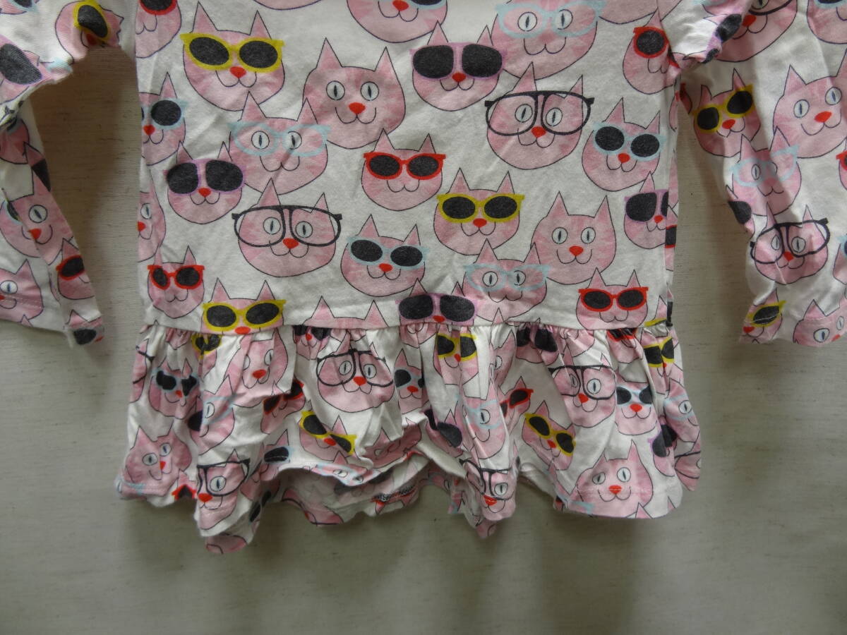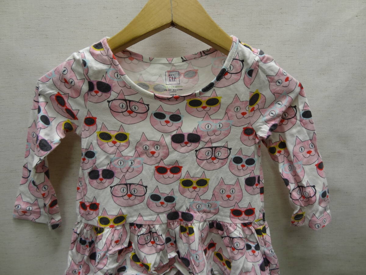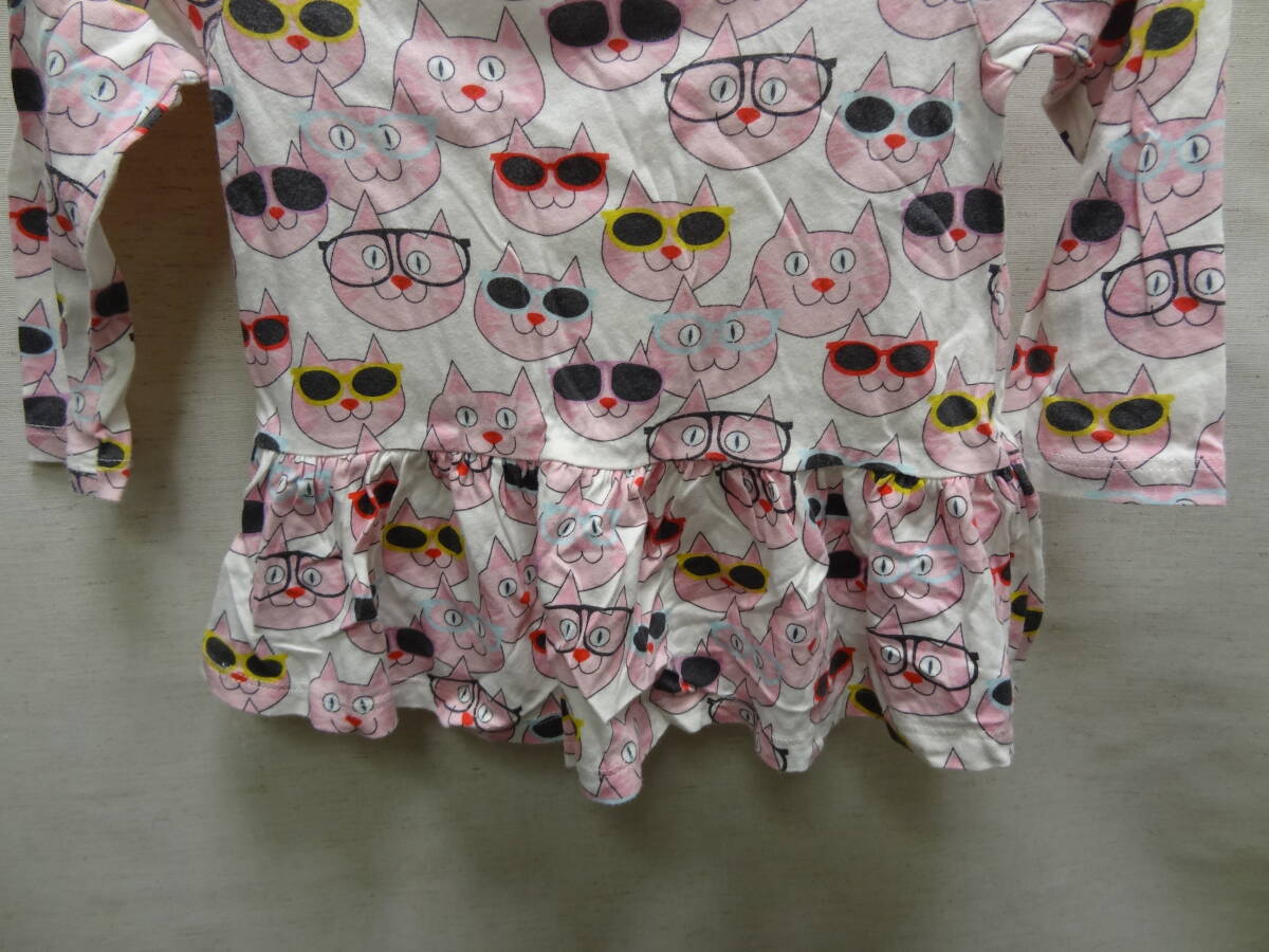 全国送料無料 ベビーギャップ baby GAP 子供服キッズベビー女の子 メガネ猫 プリント 綿100%素材 長袖 ワンピース チュニック Tシャツ 90