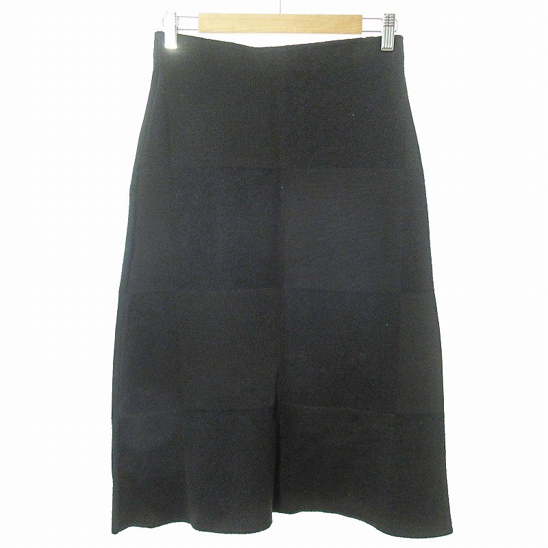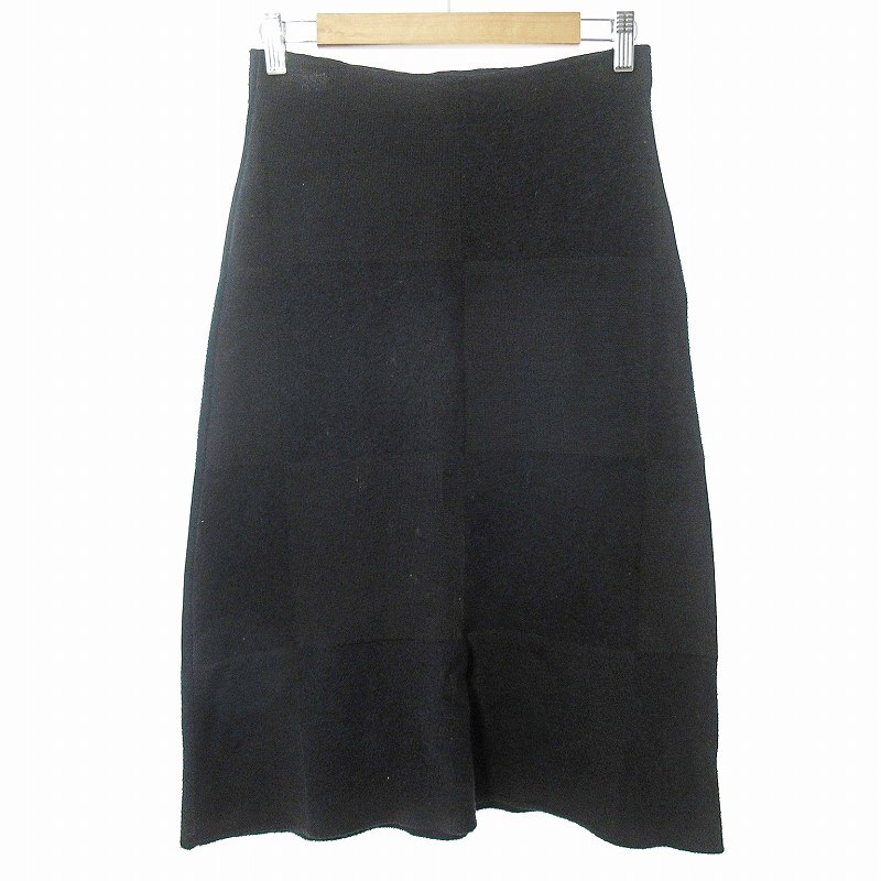 ジルサンダー JIL SANDER ニット ロング スカート ミディ丈 グラフチェック 市松模様 34 黒 ブラック 0131 IBO66 レディース