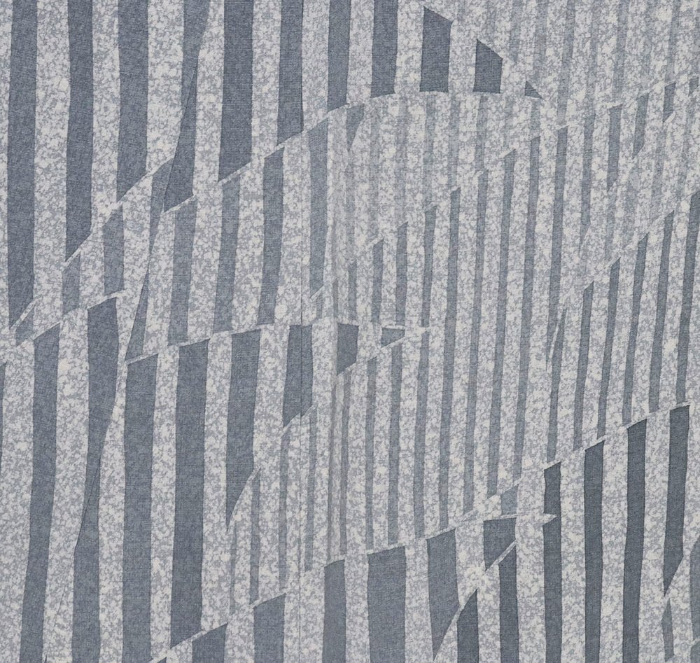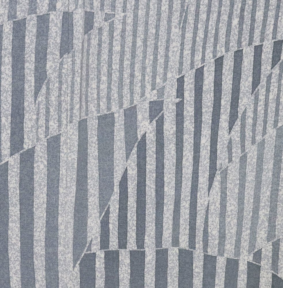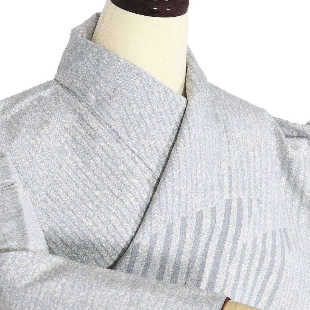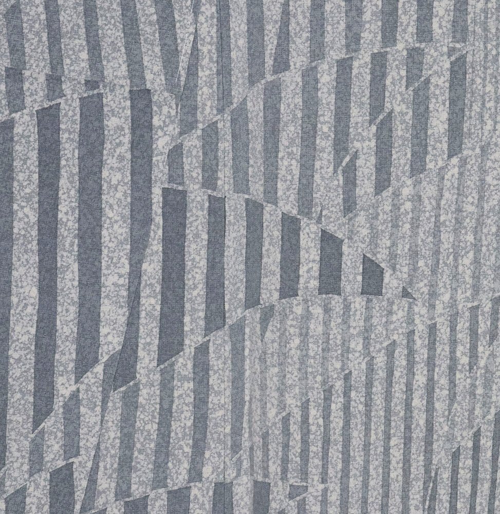 | 上代紬 訪問着 袷 緑(高麗納戸色)・グレー(藍鼠色)・クリーム(藍白) 暈し地 縦縞・裂取文 161 広襟 13号 仕付け付き |