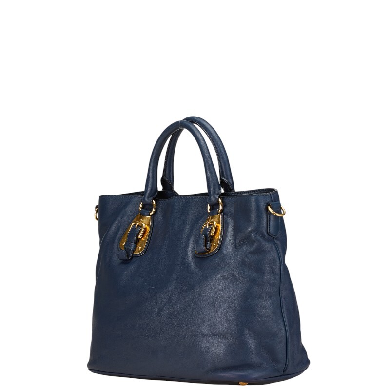 プラダ ハンドバッグ ショルダーバッグ 2WAY ネイビー レザー レディース PRADA 【中古】