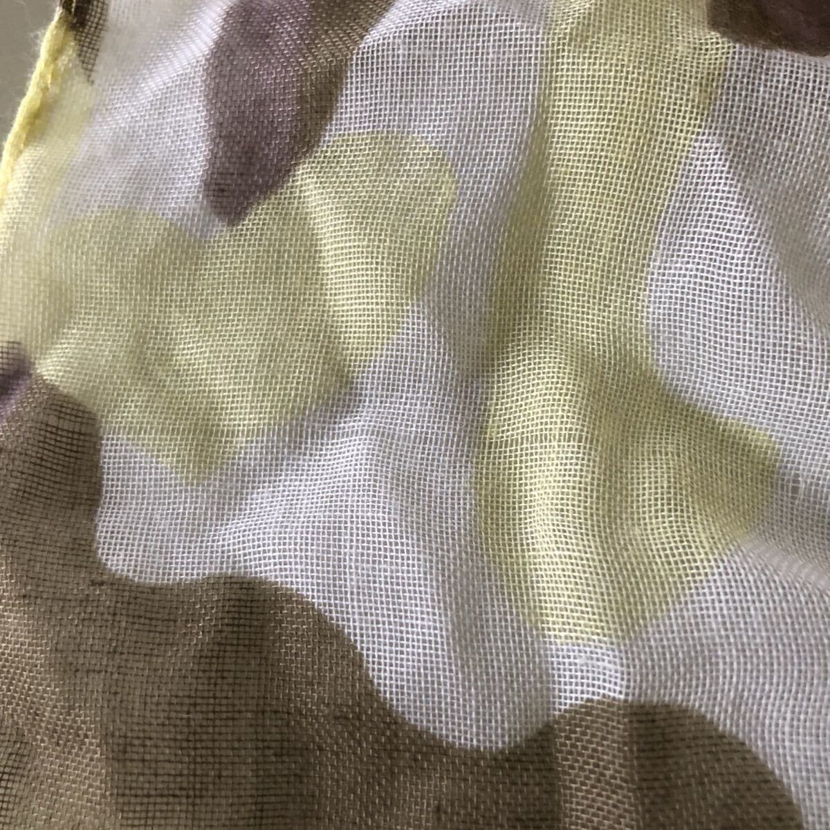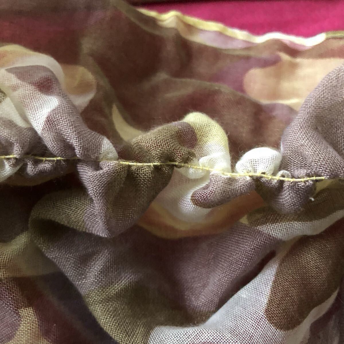 ストールの大きさより10センチ内側に、ぐるりと1周シャーリング加工がしてありますので、さりげなく巻いただけでも細かいギャザーが現れて、テクニック要らずです。(画像6)