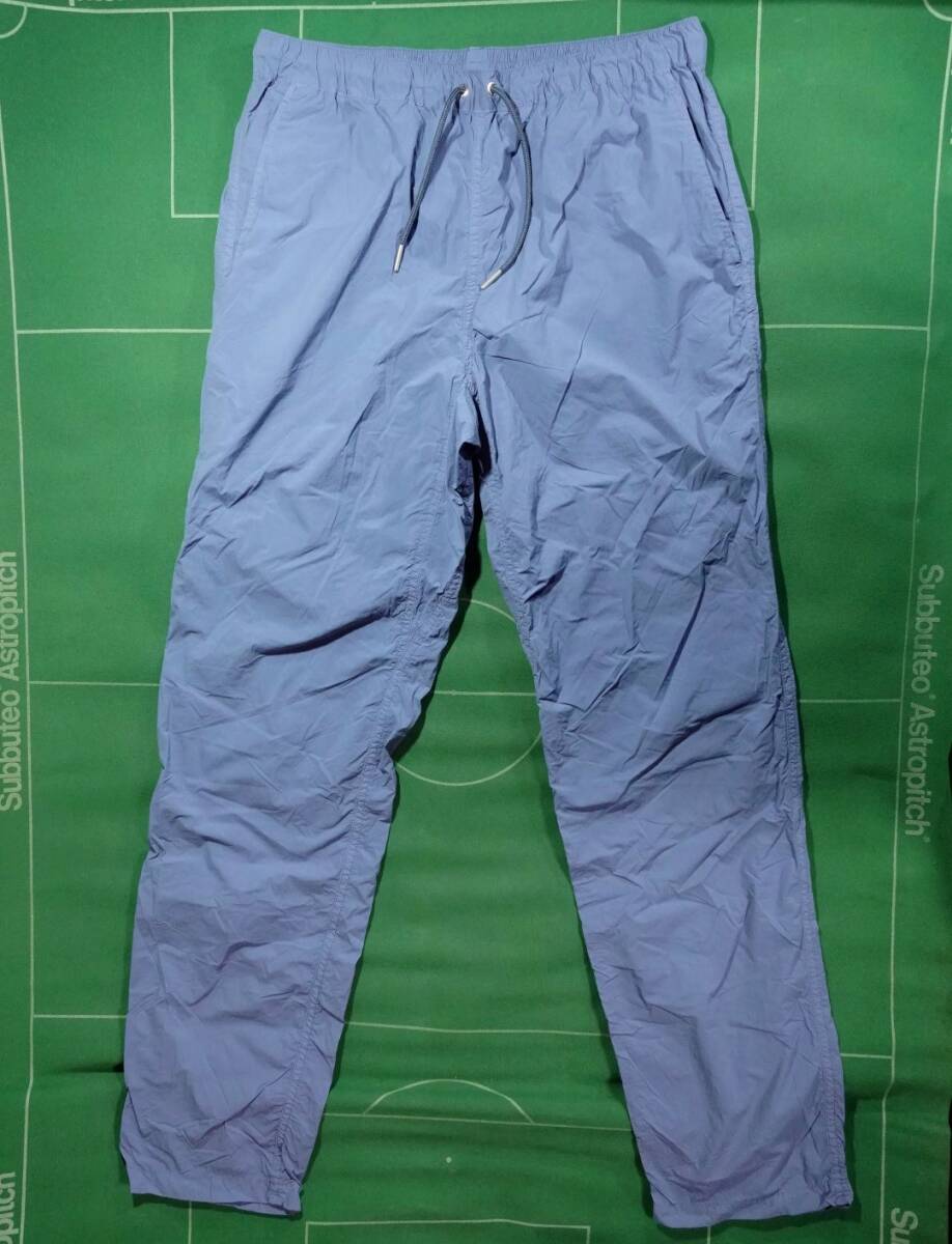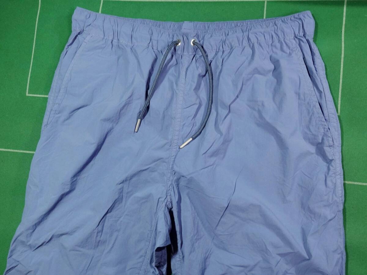 ややシャカシャカ感のある撥水性軽量ナイロン素材を使ったゆったりシルエットのイージーパンツです。