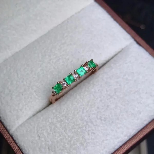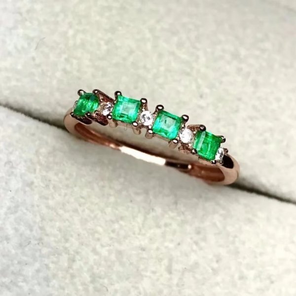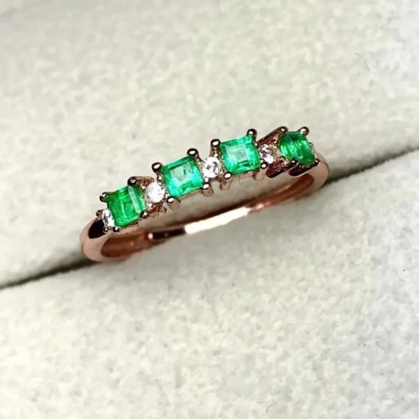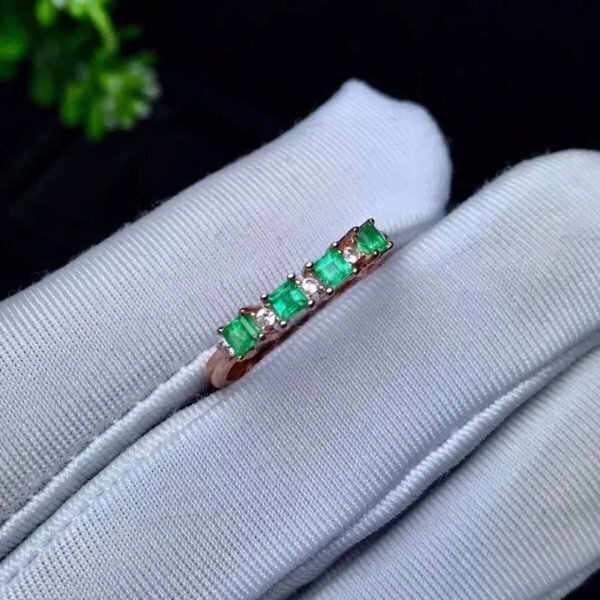 ナチュラルエメラルドリング、925スターリングシルバー、証明書