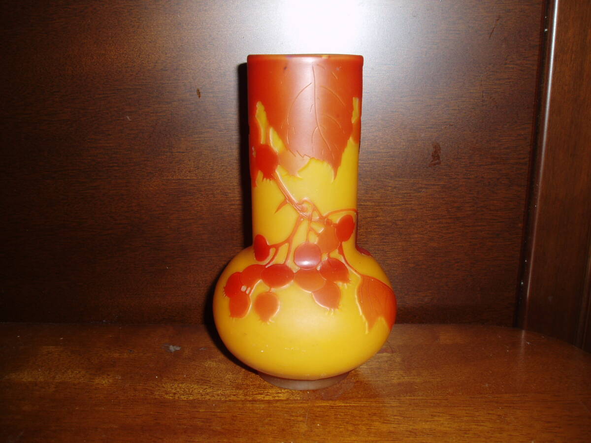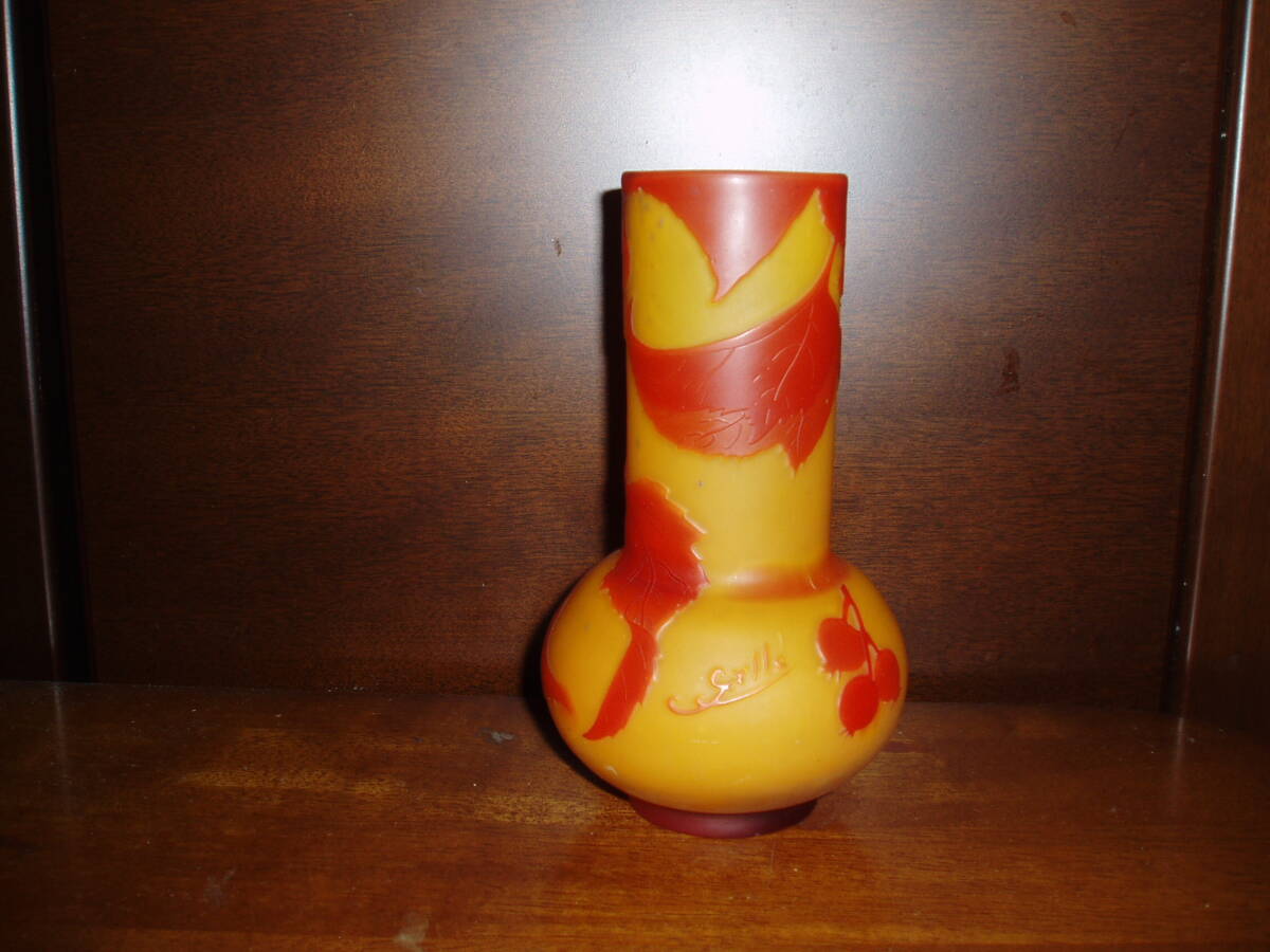 高さは約15.5センチ、口縁の径5センチ、2番目の写真にガレのサインがあります。