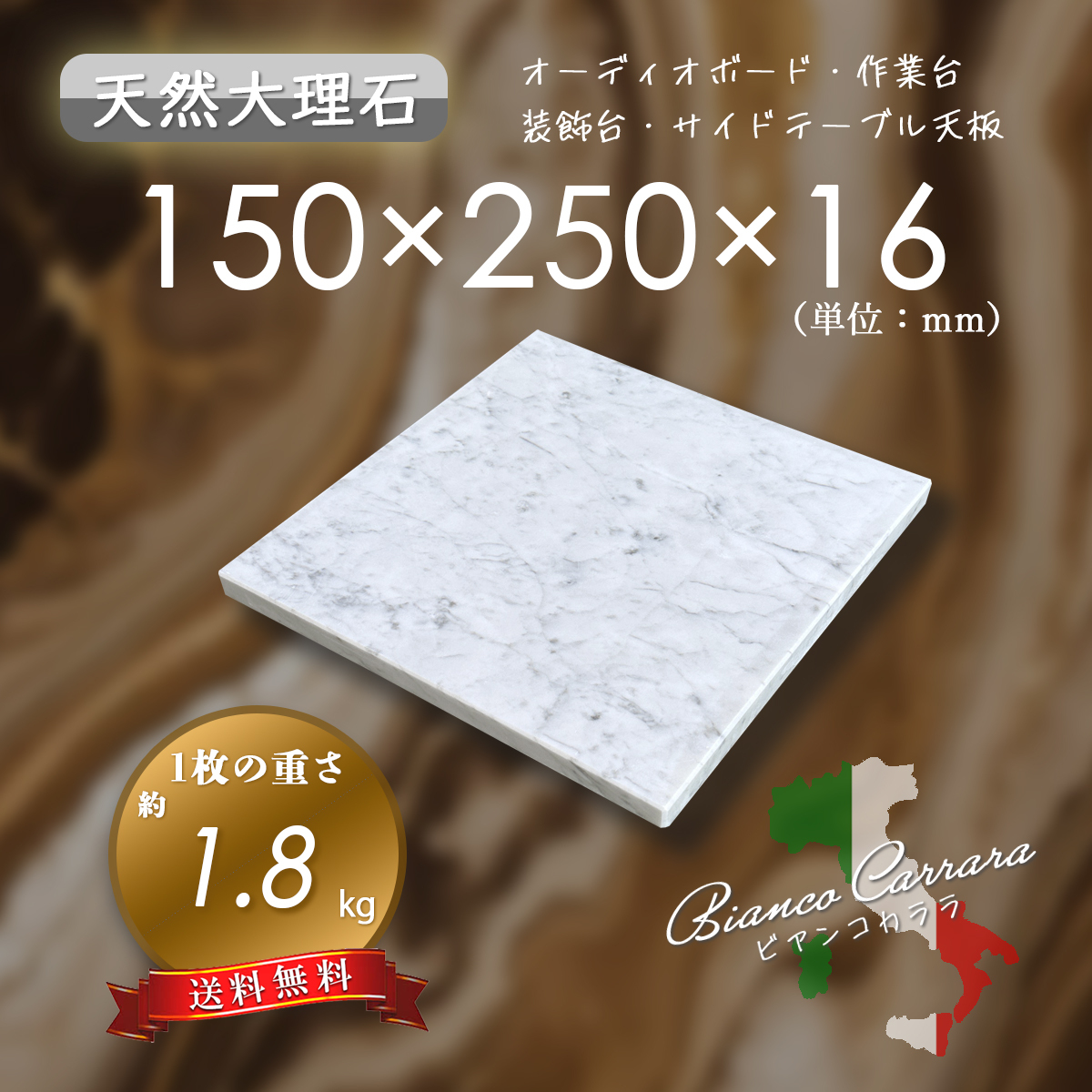 【超高級天然大理石】 オーディオボード 白系 ビアンコカララ 150mm×250mm×16mm 5面磨き 新品 即決 送料無料