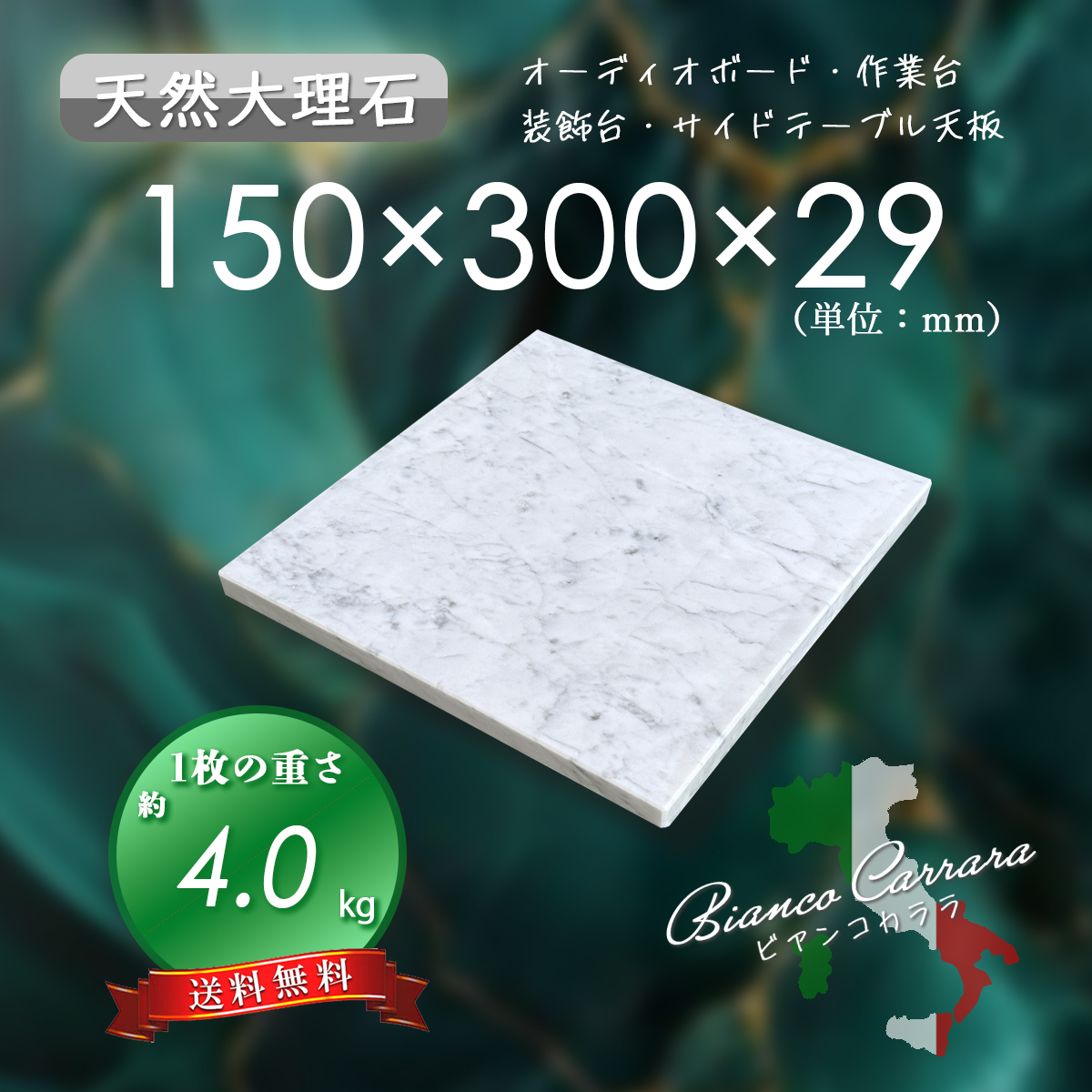 【超高級天然大理石】 オーディオボード 白系 ビアンコカララ 150mm×300mm×29mm 5面磨き 新品 即決 送料無料