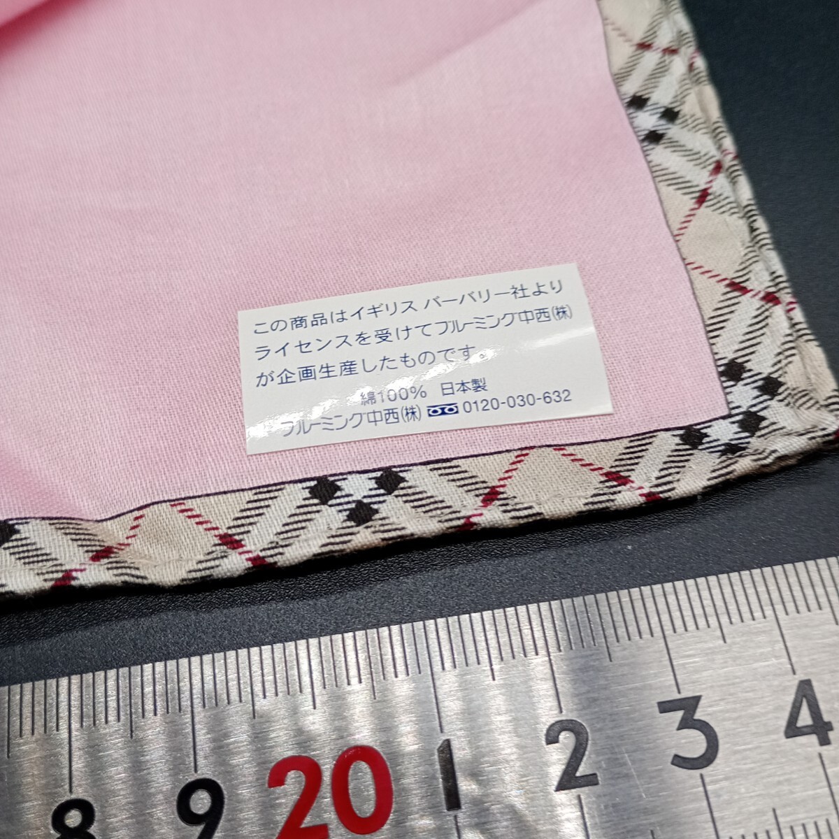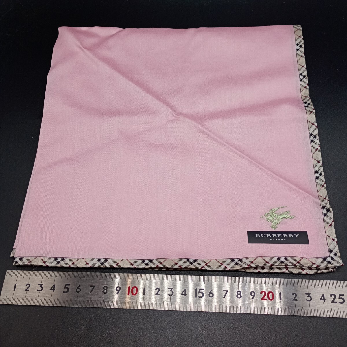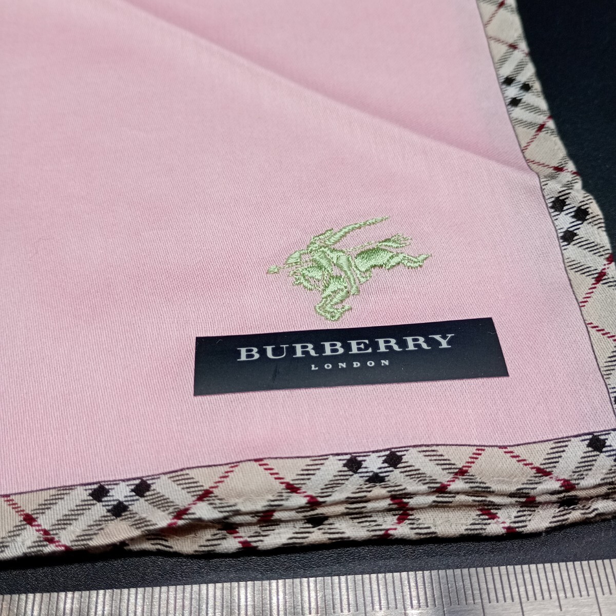 BURBERRY バーバリー ハンカチ ピンク ふちチェック ライトグリーンホースマーク刺繍   no.3012