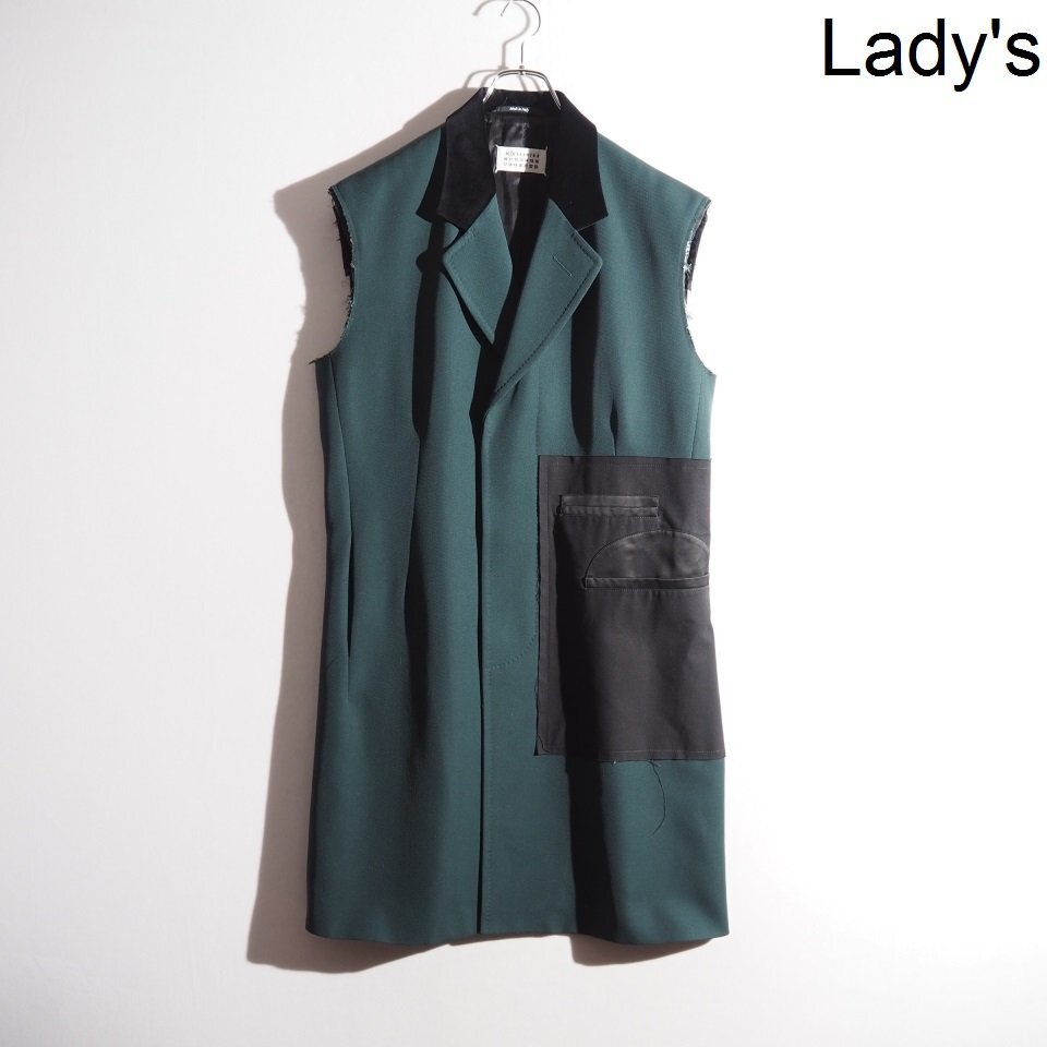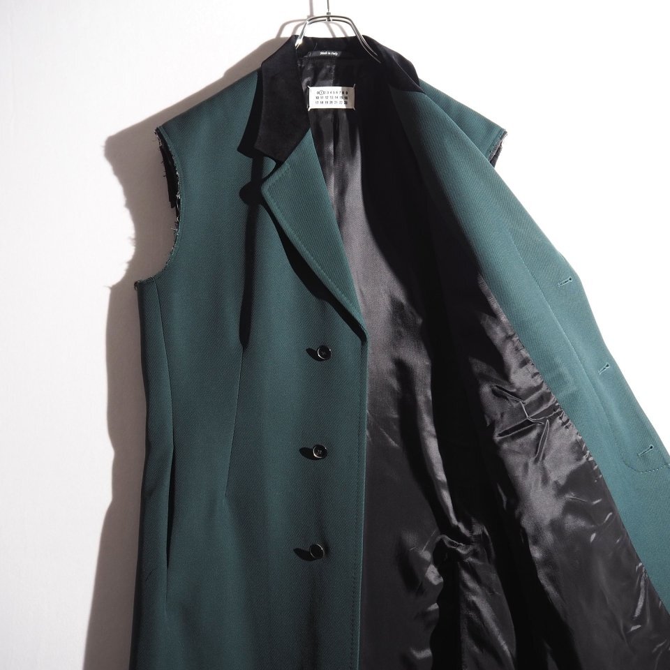 C3777P ▼Maison Margiela メゾンマルジェラ 1▼ 21AW カットオフ ノースリーブコート グリーン 40 / ロングベスト ジレ 秋冬 rb mks