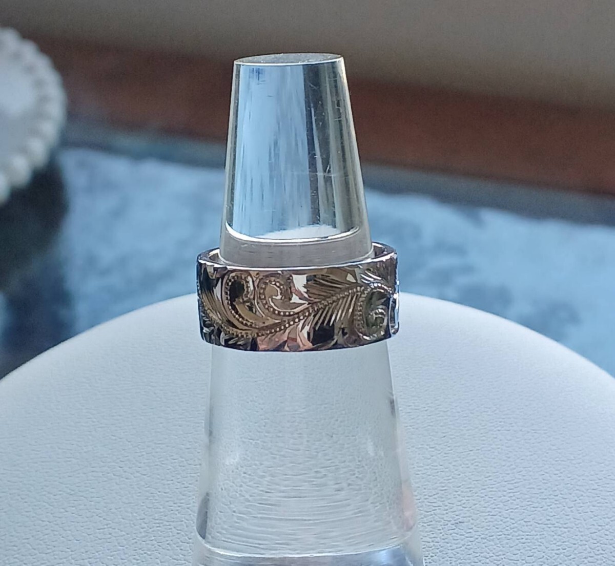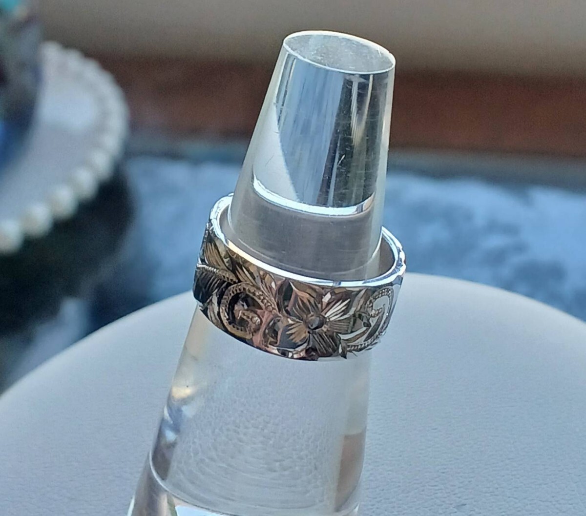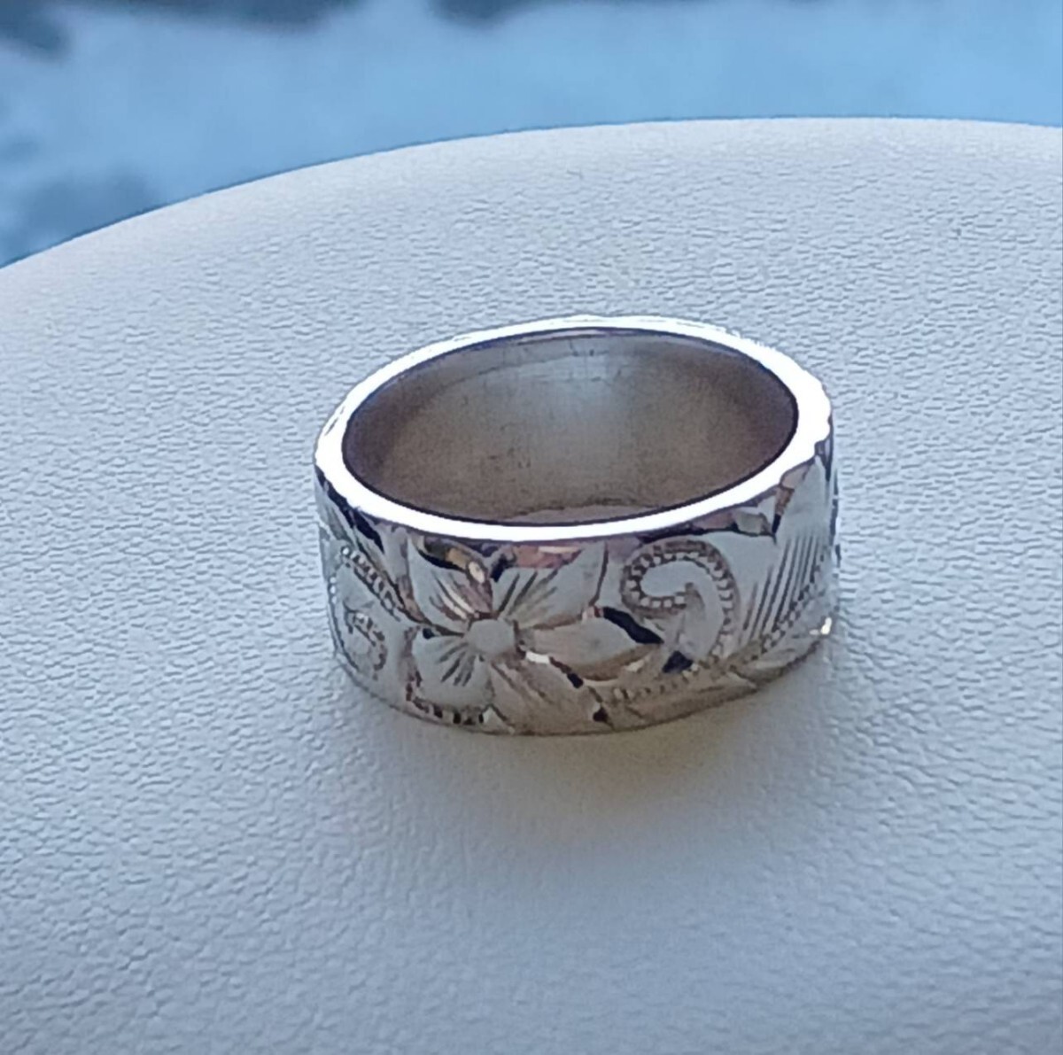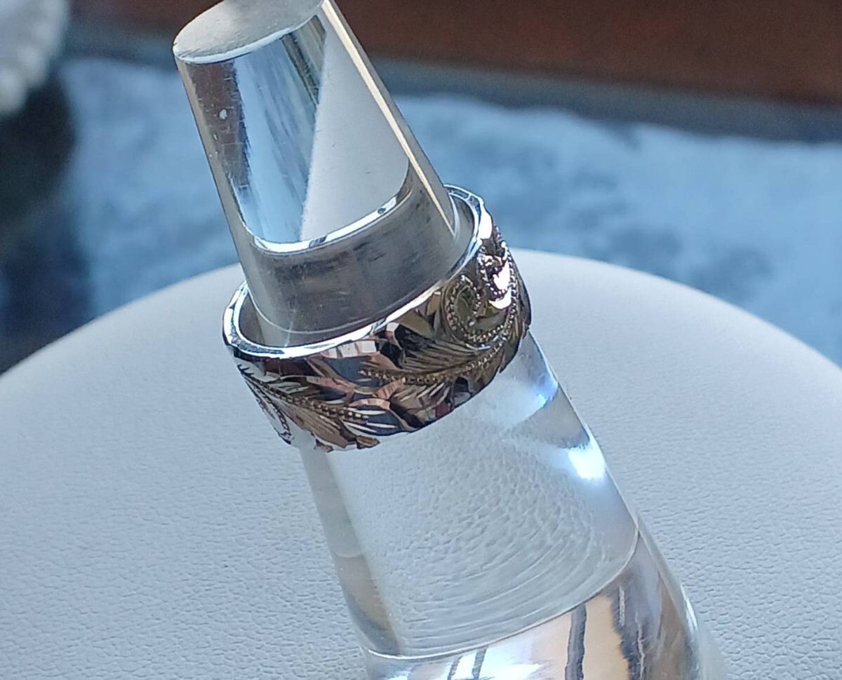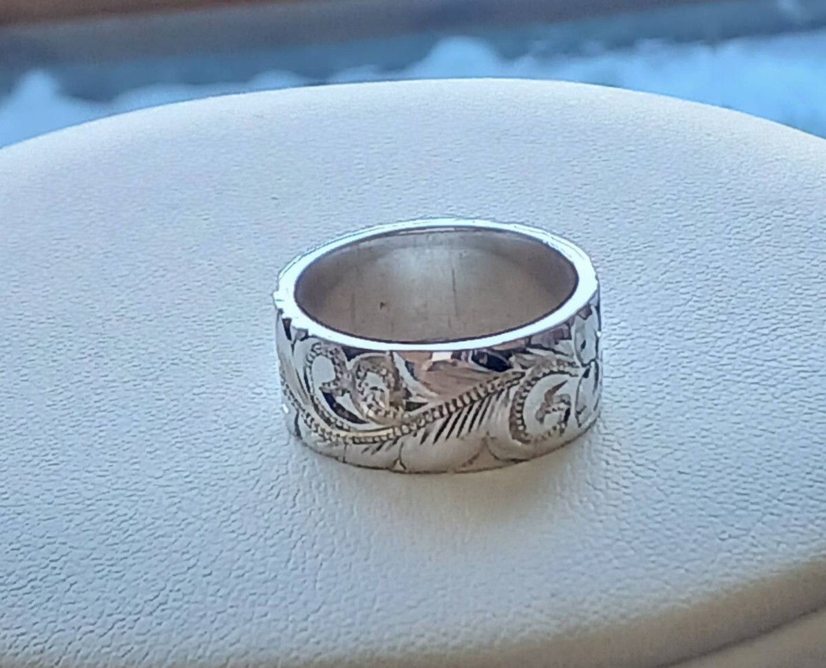 シルバー 平打ち ハワイアン手彫りリング