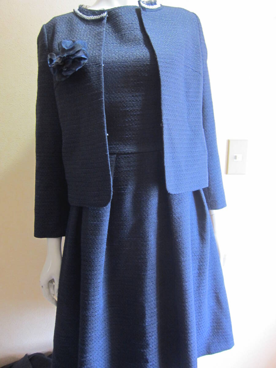 Color(色):画像参照 Size(表記サイズ):画像の表示参照 肩幅33cm、身幅42cm、着丈92cm、袖丈21cm ジャケット=着丈45cm、袖丈49cm (平置きで計測できる項目のみ記載) Material(素材):画像の表示参照 Condition(状態):付属のコサージュはケースなどが無いためつぶれ感があります(整えてお使いくださいませ)、着用感多少程度で、問題なくお使いいただけます。 A note(備考):華やかな雰囲気で素敵です。 配送時のコサージュのつぶれもご容赦くださいませ。 ぎりぎりレターパックプラスに入ります。 注)画像の白い丸はフラッシュの加減で、汚れなどではございません |