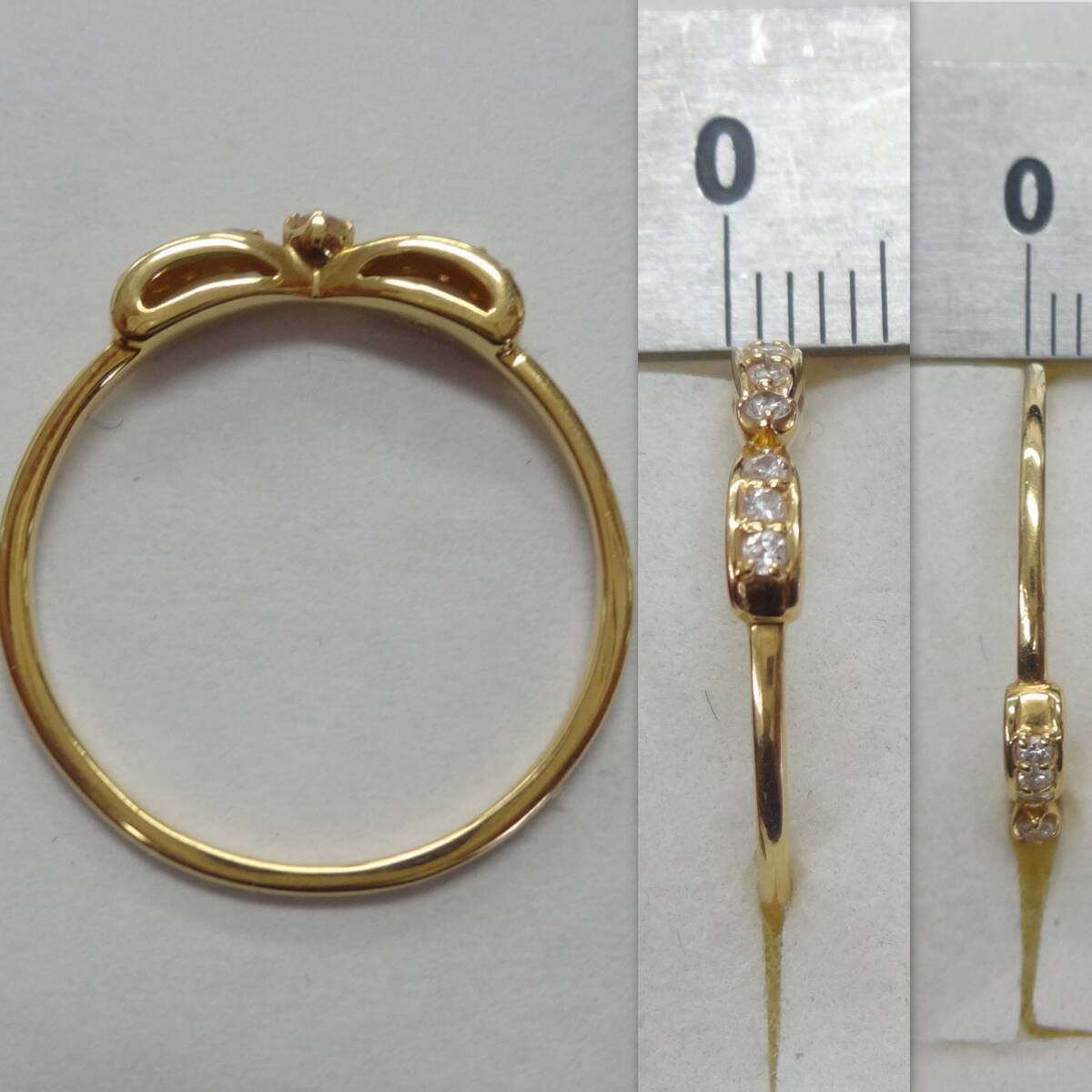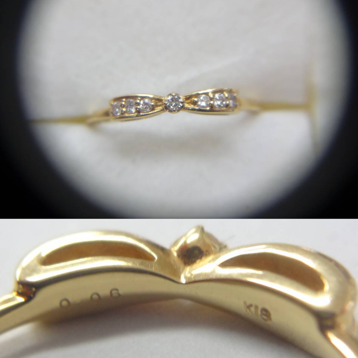8.5号 18金 ダイヤモンド リング 0.06ct k18 指輪 ダイヤ リボン