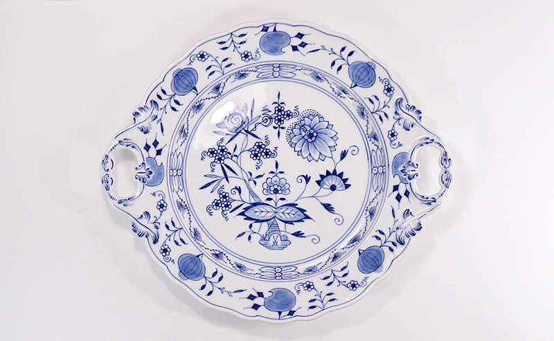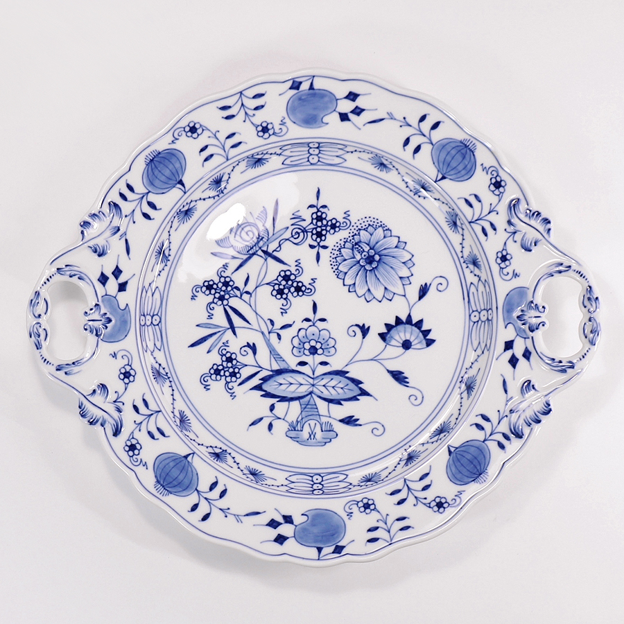 マイセン ブルーオニオン ケーキプラター Meissen ハンドル付き 30×26cm ST93