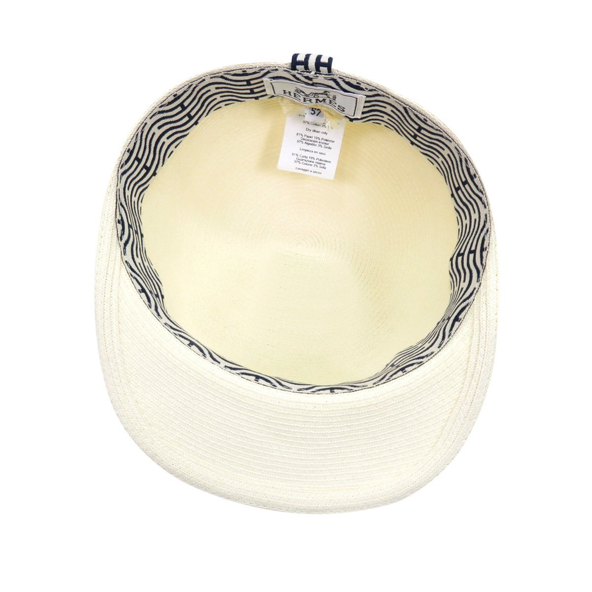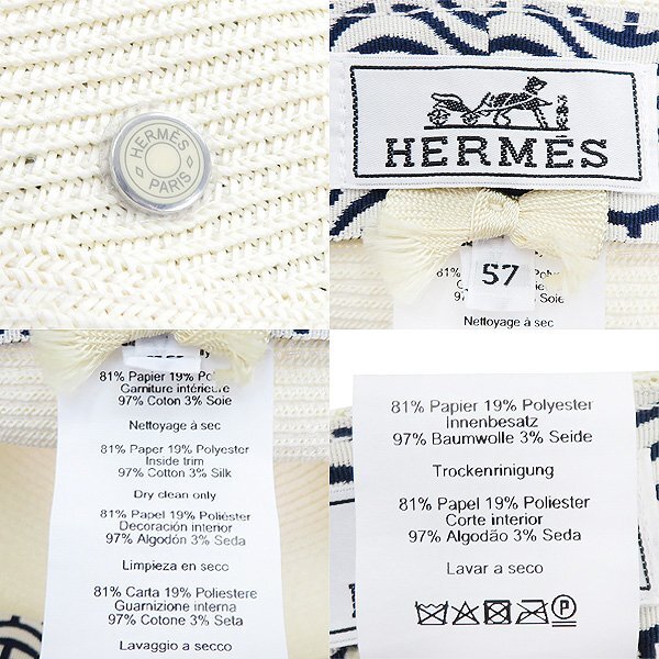 ブランド エルメス/HERMES 1837年ティエリ・エルメスがフランス・パリに創業。多くの著名人、セレブ達に愛用され「ジャーン・バーキン」の「バーキンバッグ、」「グレース・ケリー」の「ケリーバッグ」を代表に最高級品質の商品を生み出しています。最大の魅了は、知名度や創業から170年のキャリアに驕ることのない、熟練職人による手作りへの拘りと徹底的な品質管理とアフターケアや顧客サービス「本当に良いもの」を提供するブランドとして確固たる地位を築いています。 ※鑑定済みの正規品です。万が一偽物の場合には全額返金致します。 商品説明 ☆美品☆ ●素材:ペーパー81% ポリエステル19% ●カラー:アイボリー系 サイズ ・表記サイズ・・・57 ・つば長さ・・・約6cm ・被り口周り(内周)・・・約55cm 商品状態・コンディション A・使用感が少なく、比較的着用回数が少ないとみられる商品 スベリ部分に汚れがございますが、表側に目立つような汚れ等は見受けられず弊社基準にて美品と判断できる商品です。 中古品にご理解のある方であればご納得頂ける状態だと思います。 付属品 なし |