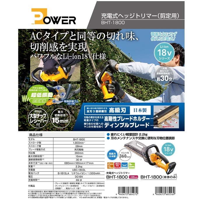 京セラ(旧リョービ)製の18V充電式ヘッジトリマのBHT-1800です。