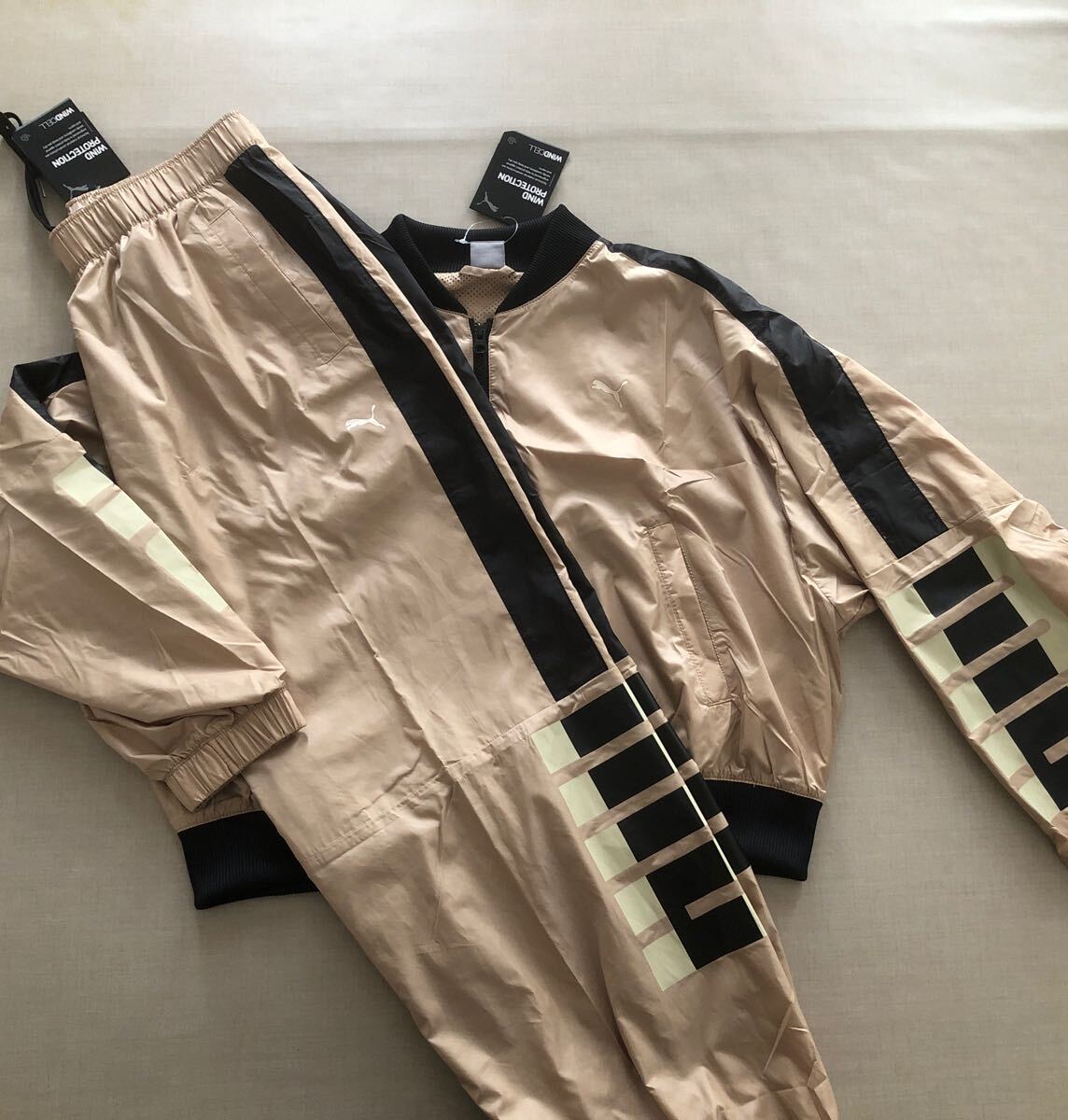ジャケットもパンツもPUMAロゴが両サイドにあるデザイン