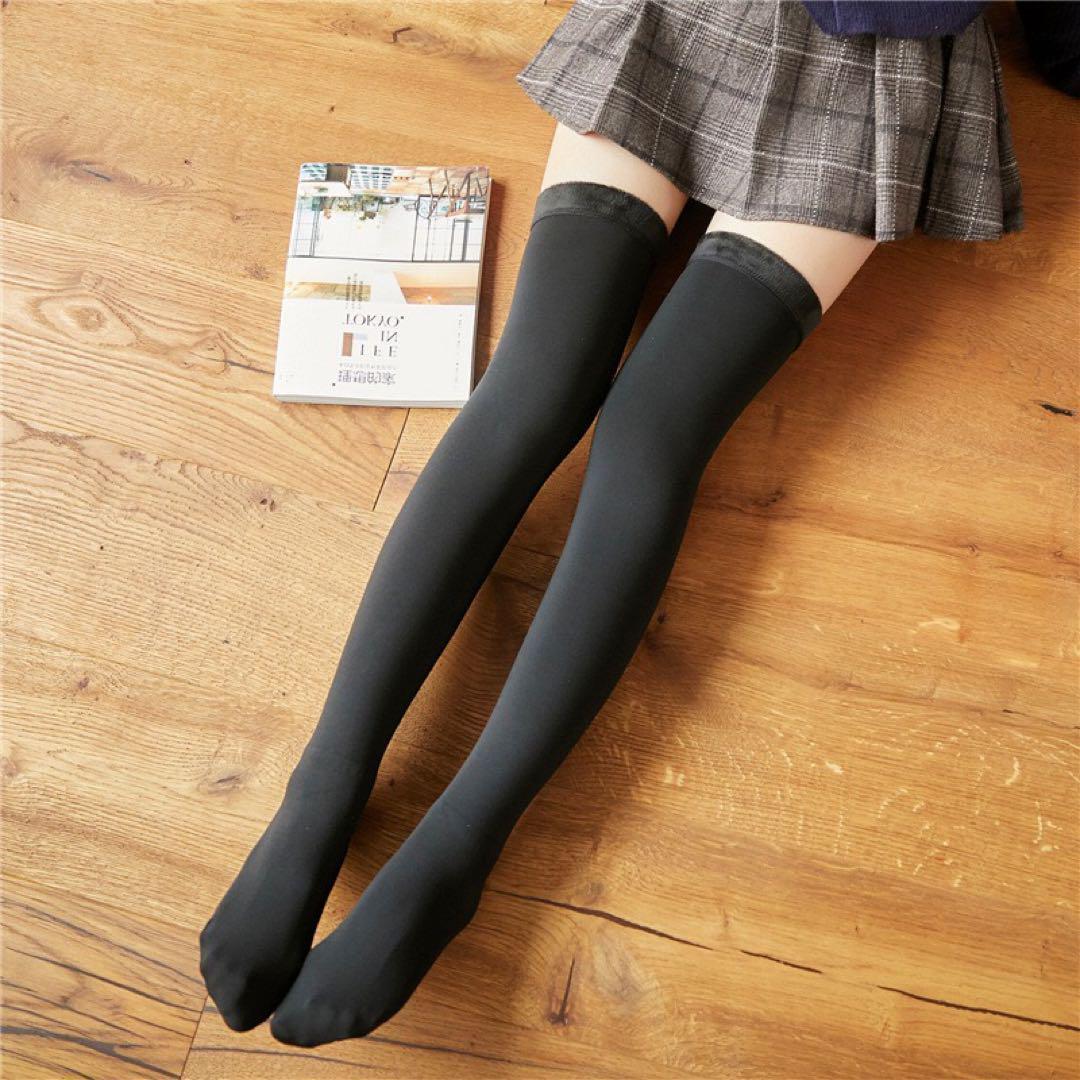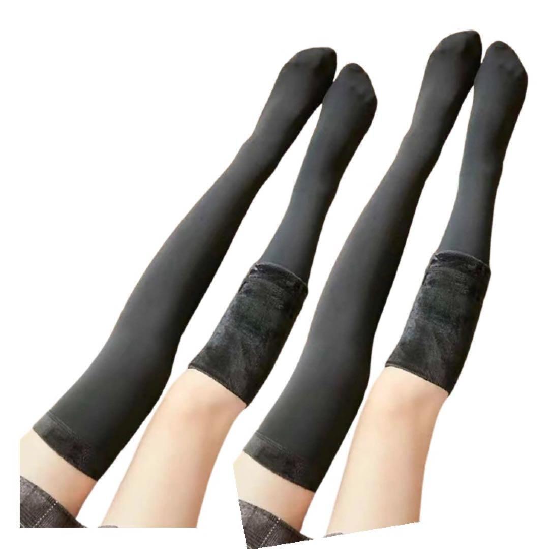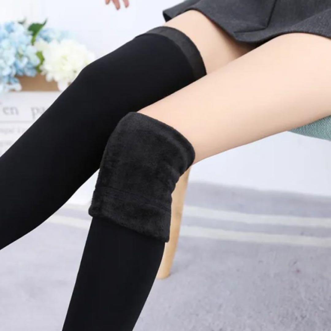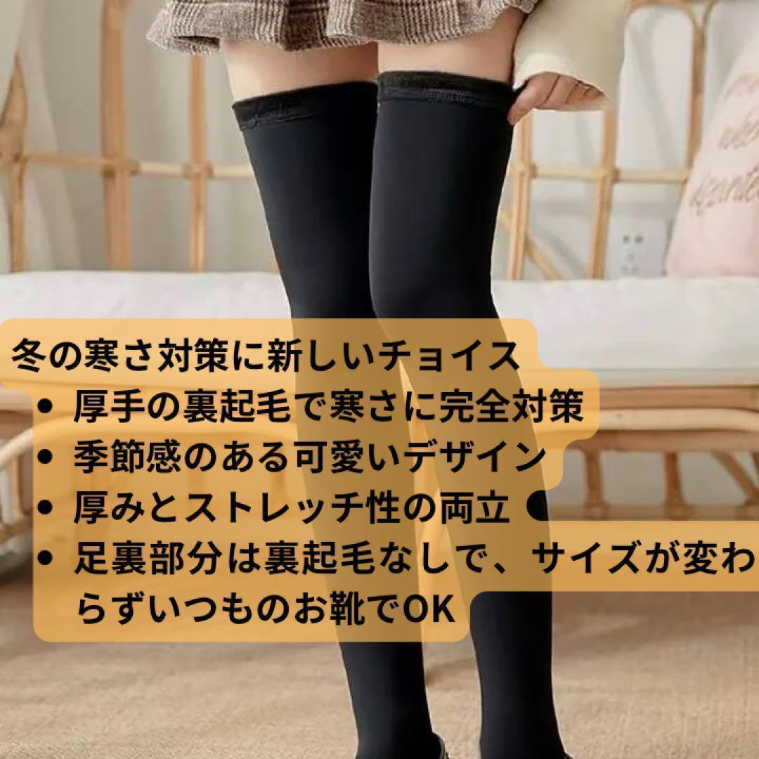 ス保温防寒セット 無地ブラック 肌色秋冬あたたかい裏起毛ソックスハイソックス靴下 レデ