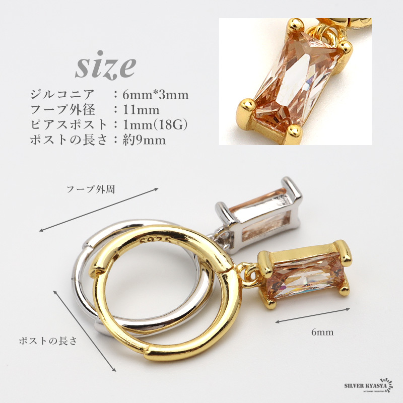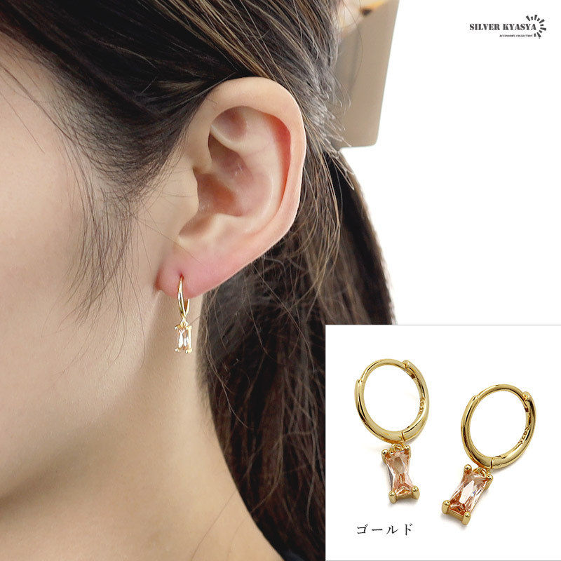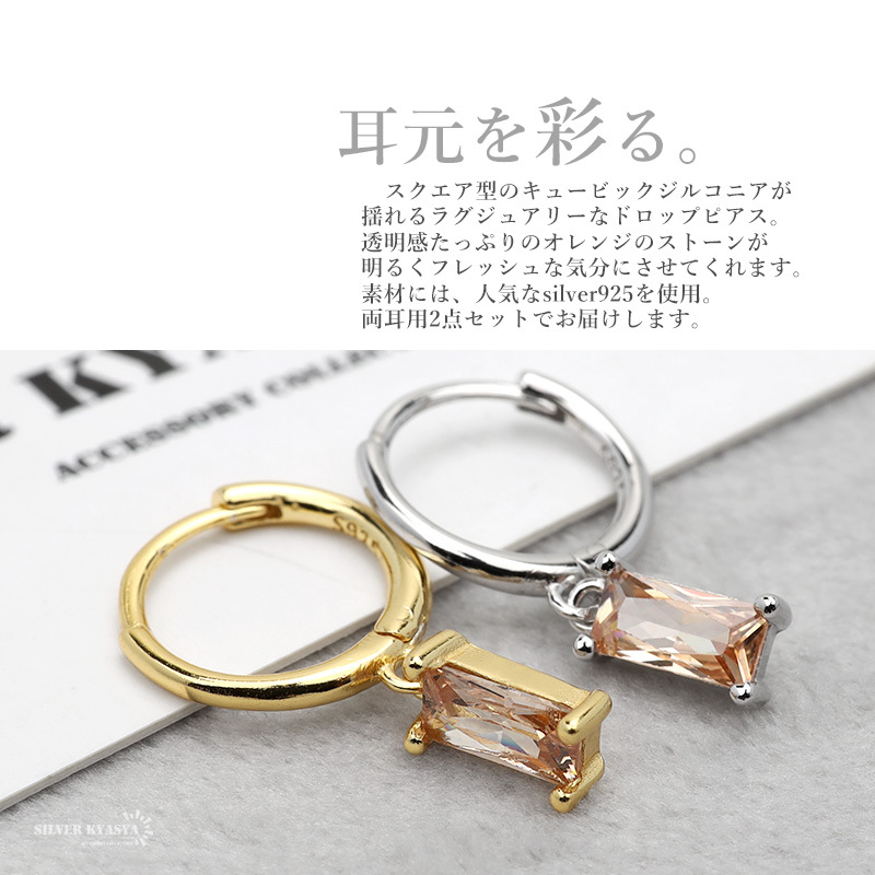 スクエア型のキュービックジルコニアが揺れるドロップピアス。透明感たっぷりのオレンジのストーンが明るくフレッシュな気分にさせてくれます。