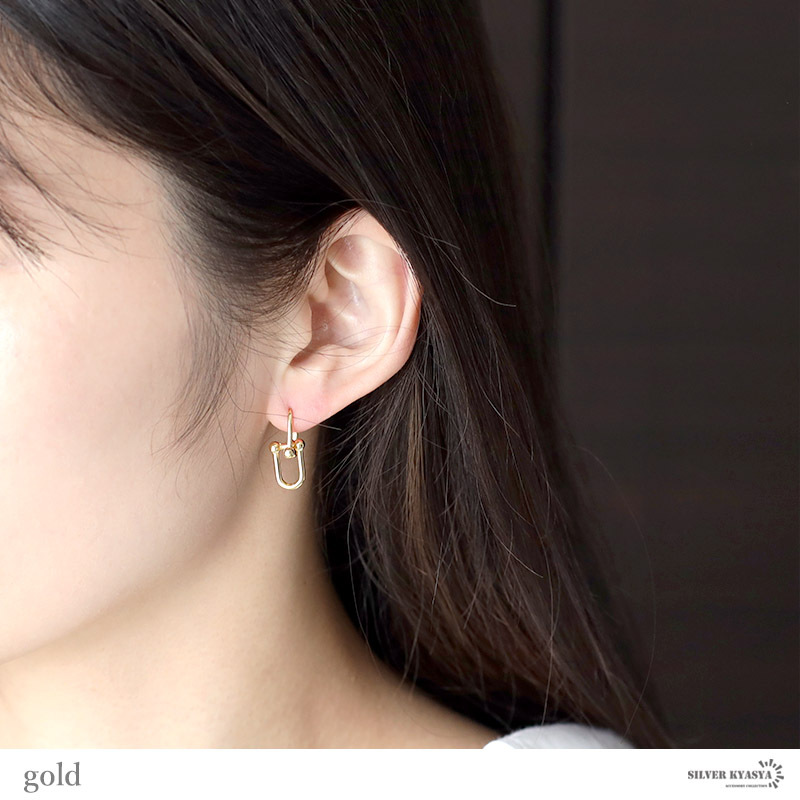 Uのフープピアスを鎖のように繋げ、揺れ感を楽しめるデザインに仕上げました。