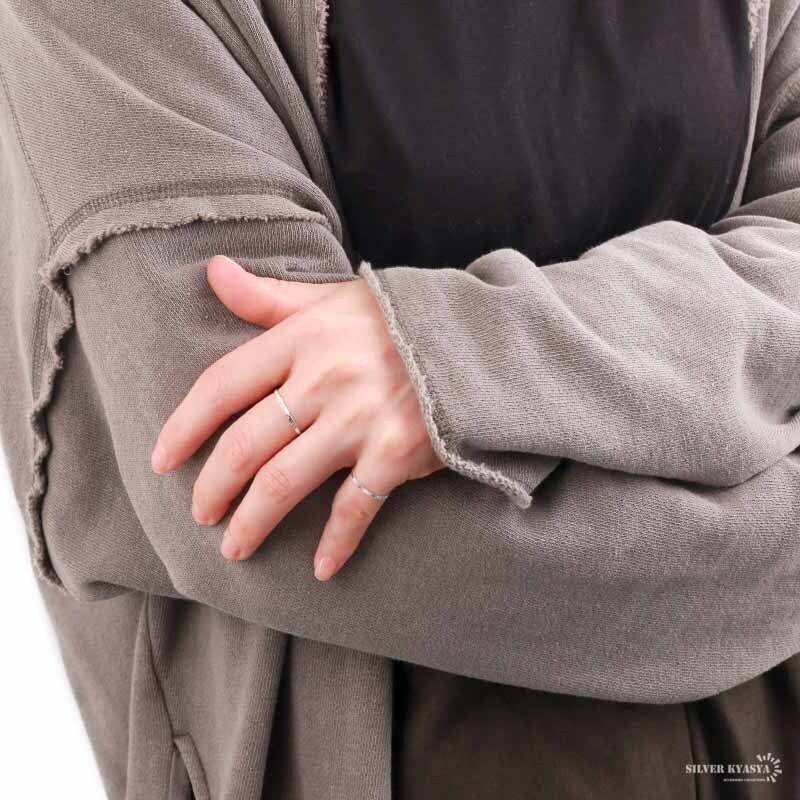 表面がギザギザとしていて、光を受けてきらりと輝く細身リング。指先を綺麗に魅せてくれる万能アイテム。