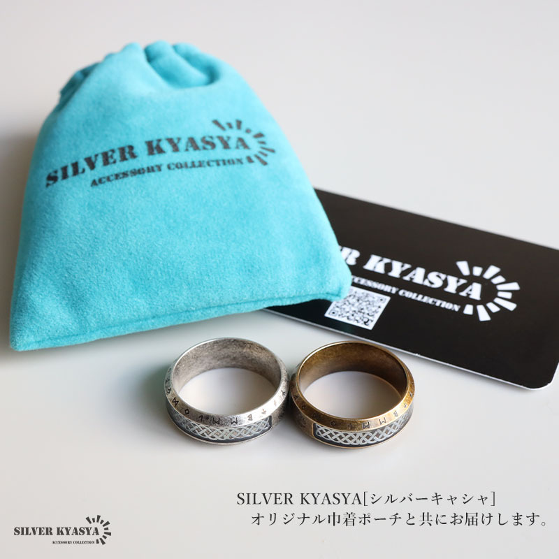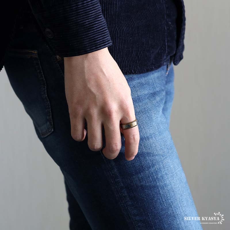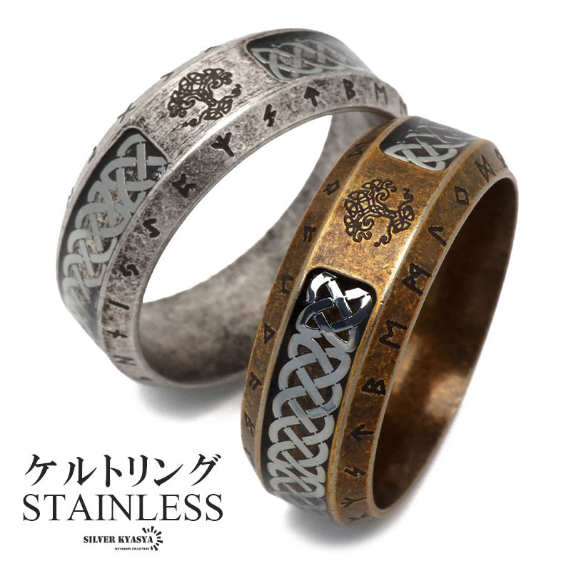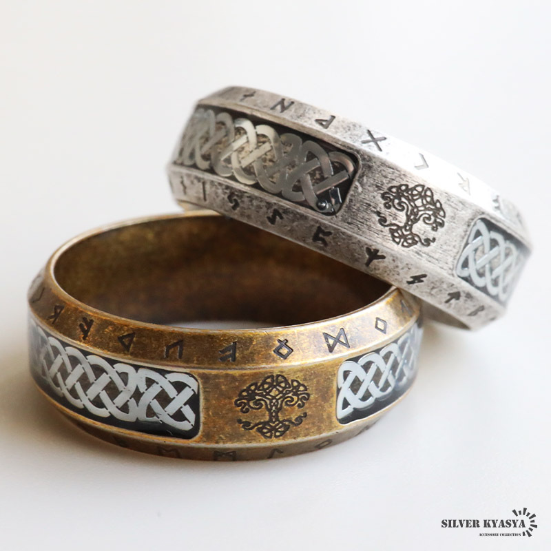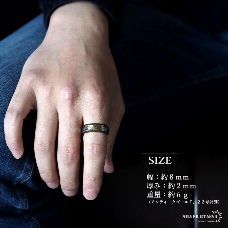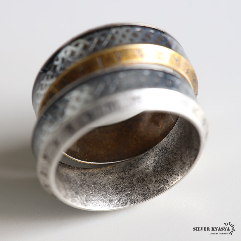 ケルト文様とケルト文字の組み合わせで幻想的な雰囲気のあるリング。アンティークボディにゴールドとシルバーカラーが映えます。普段のコーデに馴染みやすく、程よい存在感があります。